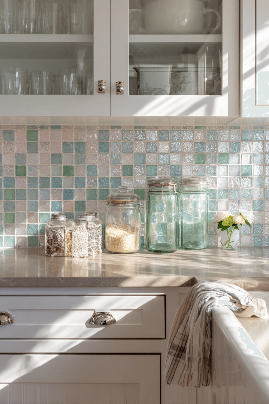 Soft shades of blush, ivory, and cream inspired by seashells create a luminous and airy effect on your backsplash. These tones bring a subtle sense of movement and light, making them ideal for coastal kitchen backsplash ideas that prioritize elegance. Pairing these tiles with natural stone or marble creates a sophisticated coastal palette. The slight sheen enhances brightness, especially in smaller kitchens. They offer grace, charm, and just a hint of the sea. Tap here for more shell-toned backsplash ideas that feel like a day at the beach!
