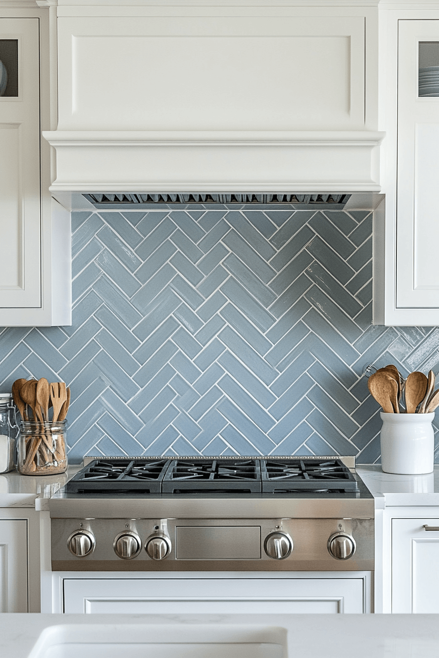 Herringbone tiles in muted ocean tones combine energy and structure for a refined beach-inspired look. Their directional pattern keeps the eye moving, making them an ideal feature wall for coastal kitchen backsplash ideas. They echo the rhythm of waves or wind-swept sand dunes in a controlled, modern way. Perfect for creating subtle drama without straying from serene color palettes. They’re stylish, smart, and very sea-worthy. Click now to see how herringbone layouts can enhance a coastal kitchen backdrop!
