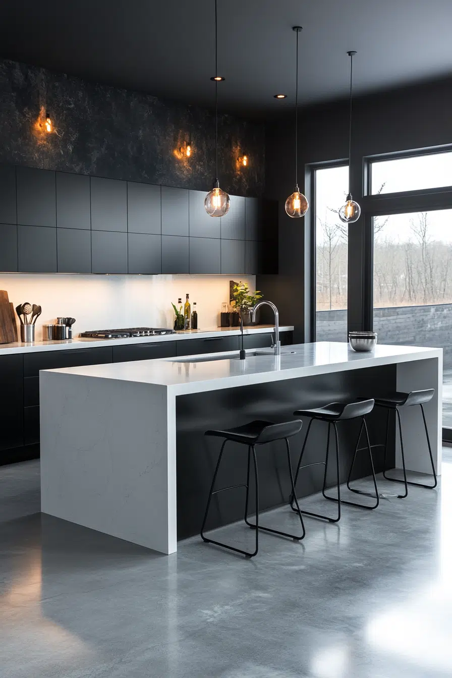 Elevate your kitchen with a monochrome minimalist style that blends timeless black-and-white tones with modern simplicity. Incorporate boho window treatments to add warmth and texture, creating a balanced and inviting atmosphere. The clean lines and sleek finishes make this design both practical and effortlessly stylish.