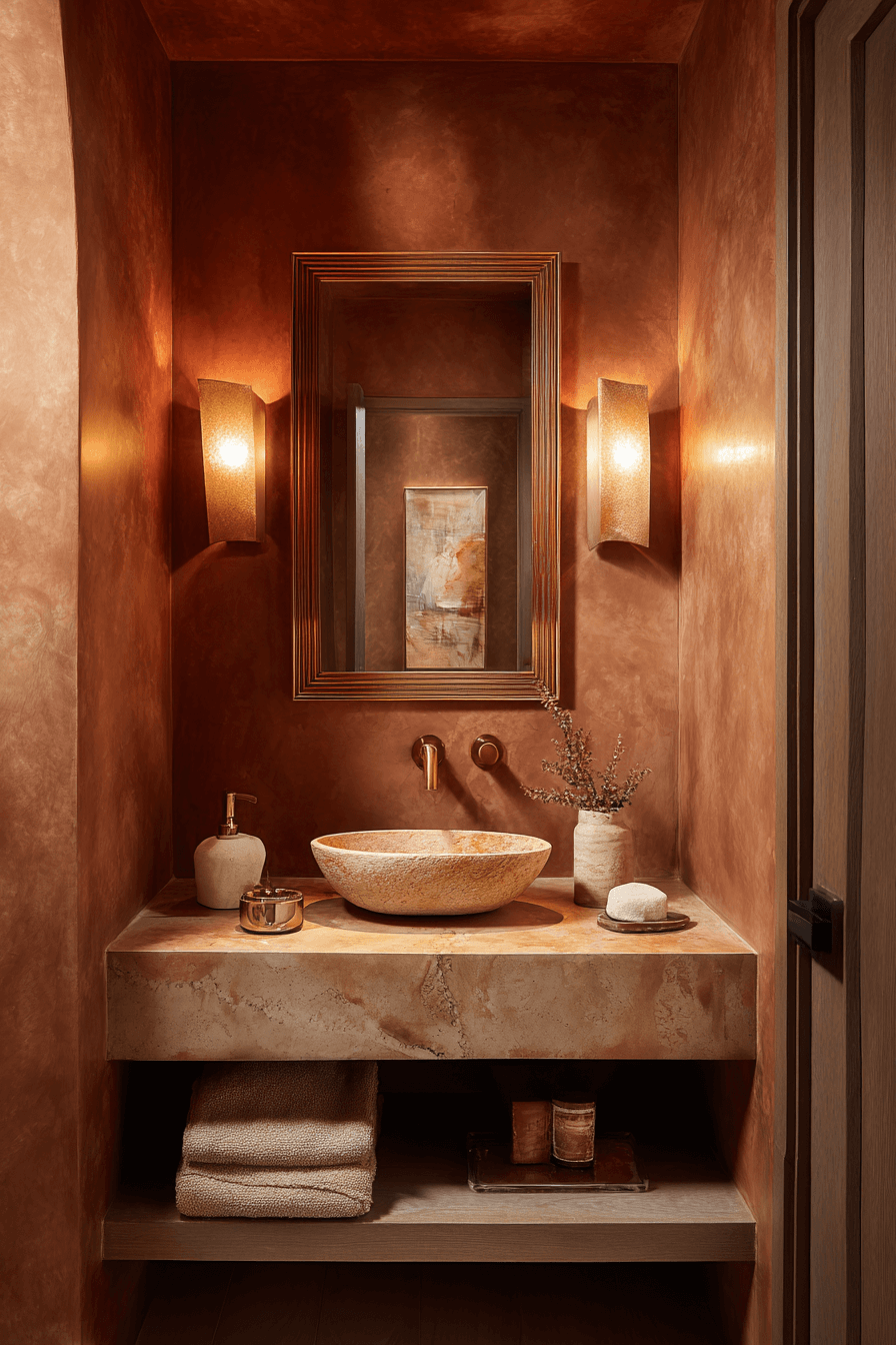 24. Chic Warm Powder Room