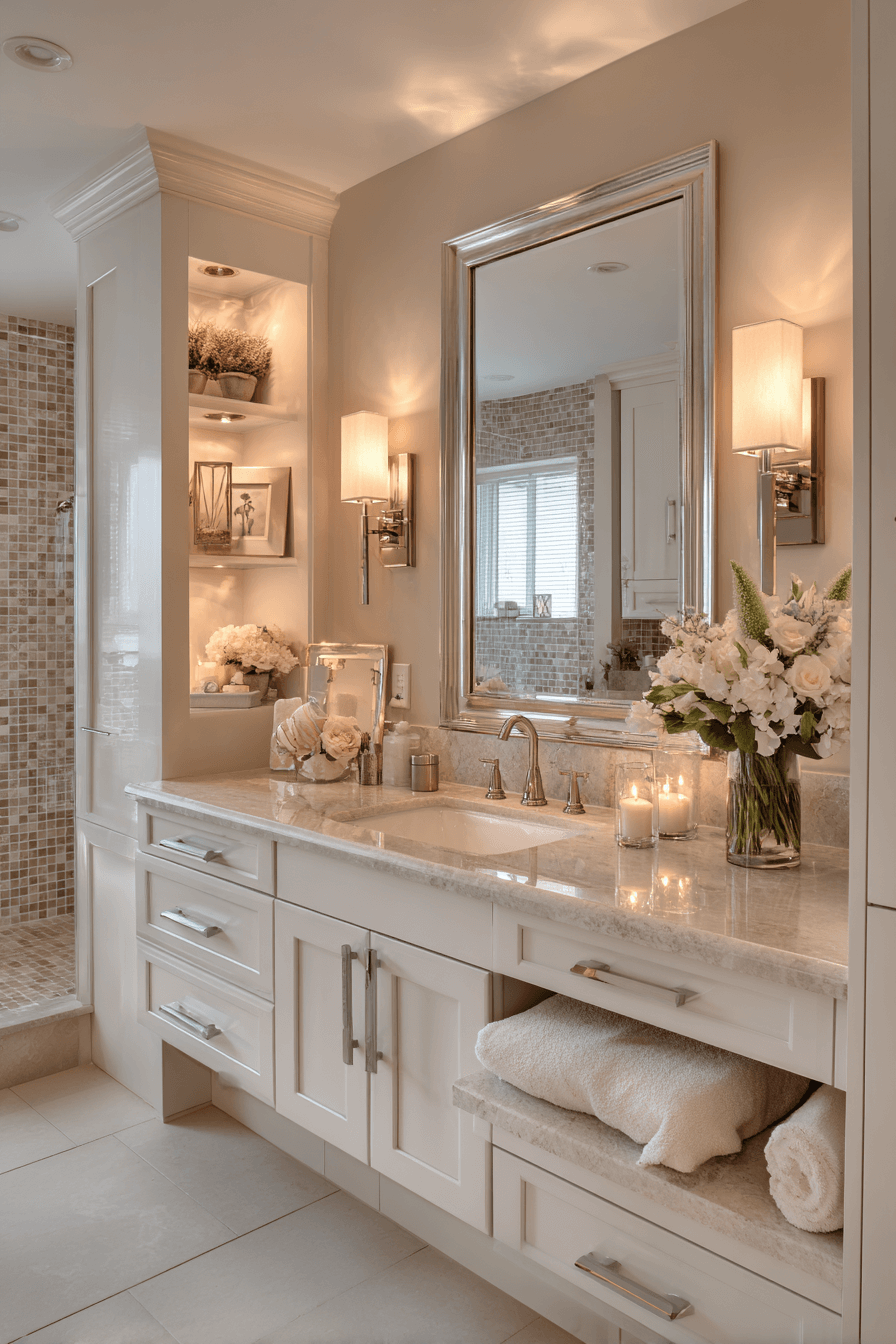 Lighting can completely define a cozy bathroom, and an ambient light haven proves it. Layered sconces, under-vanity glow, and dimmable fixtures create warmth at every level. Soft shadows make the space feel dynamic yet peaceful. Pairing warm bulbs with neutral tones enhances the cozy effect. This works because atmosphere is everything in bathroom design. Click for more lighting inspiration.