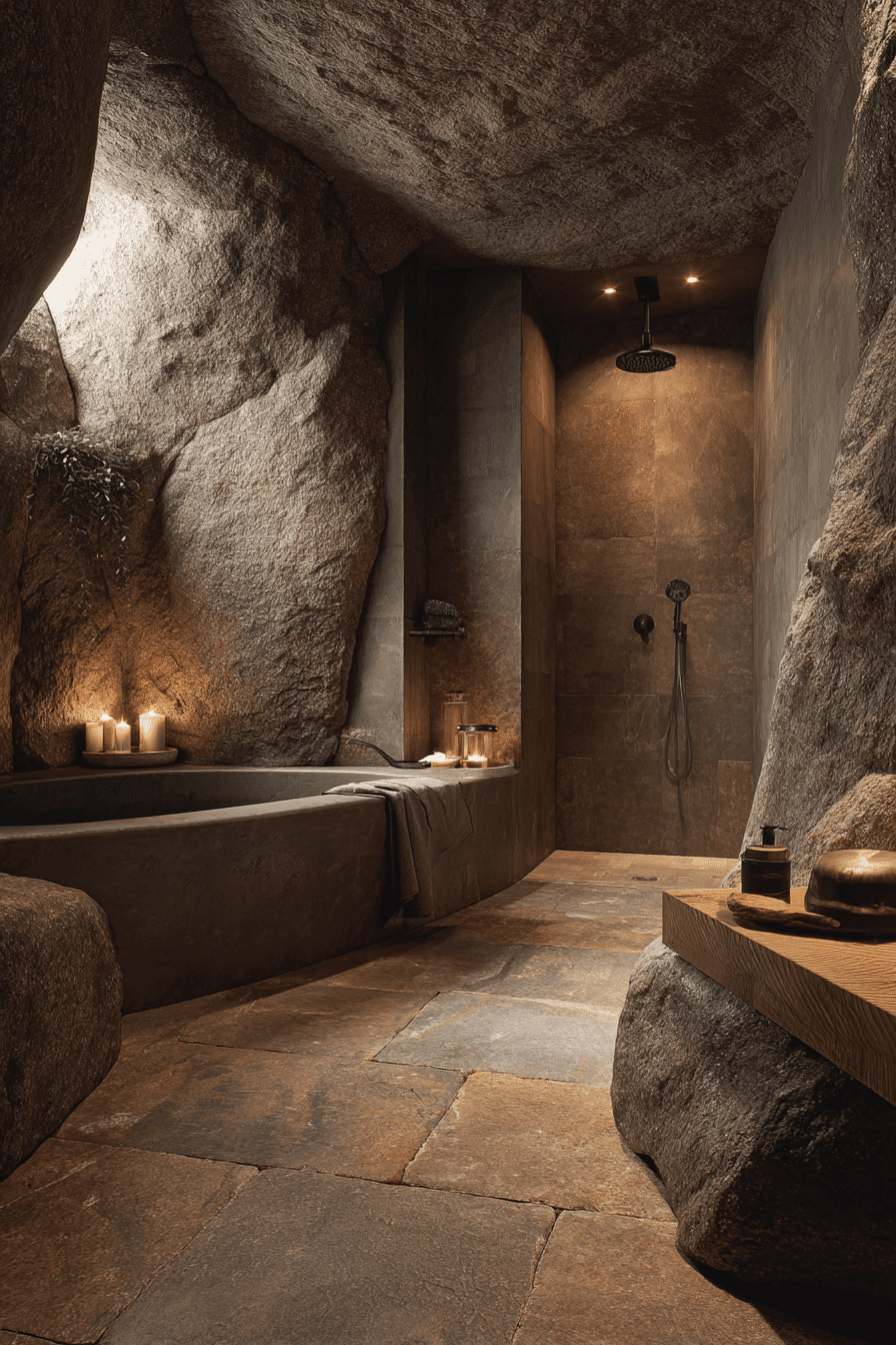 An earthy stone cocoon brings natural materials into your cozy bathroom in the most beautiful way. Stone basins, textured tiles, and warm wood vanities create organic depth that feels grounded and calming. The natural variation in the materials adds visual interest without overwhelming the design. Soft lighting enhances the textures and creates subtle shadows that feel serene and intentional. This approach works because nature-inspired elements instantly relax the mind. Tap to get inspired by more earthy bathroom ideas.