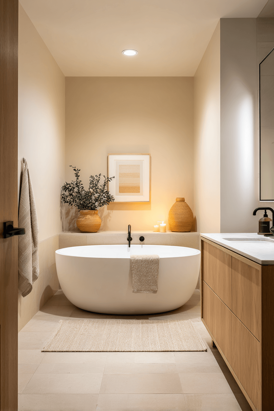 8. Warm Minimalist Bath