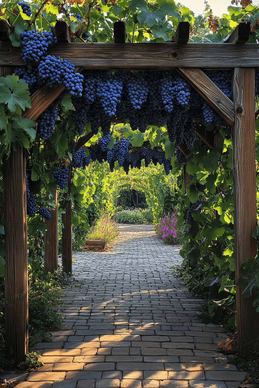 A lush and functional option, garden arbor ideas that support grapevines can transform your yard into a mini vineyard escape. As the vines grow, they create a beautiful green canopy that offers shade and visual appeal. Strong materials like treated wood or steel ensure the structure can handle the weight over time. It’s perfect for covering outdoor dining areas or walkways with natural beauty. Plus, you get fresh grapes as a bonus. Tap to uncover more garden arbor ideas that blend beauty and function.