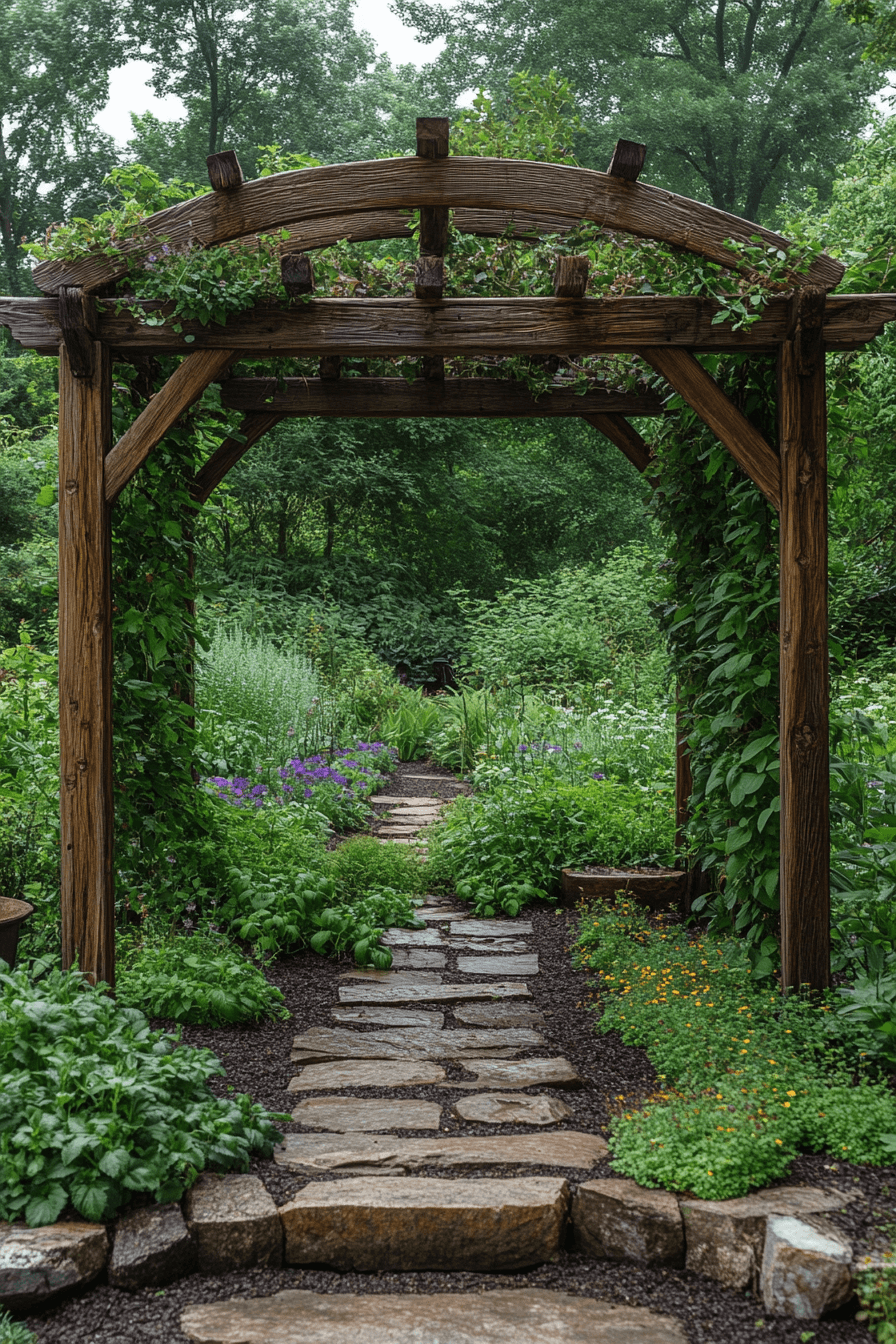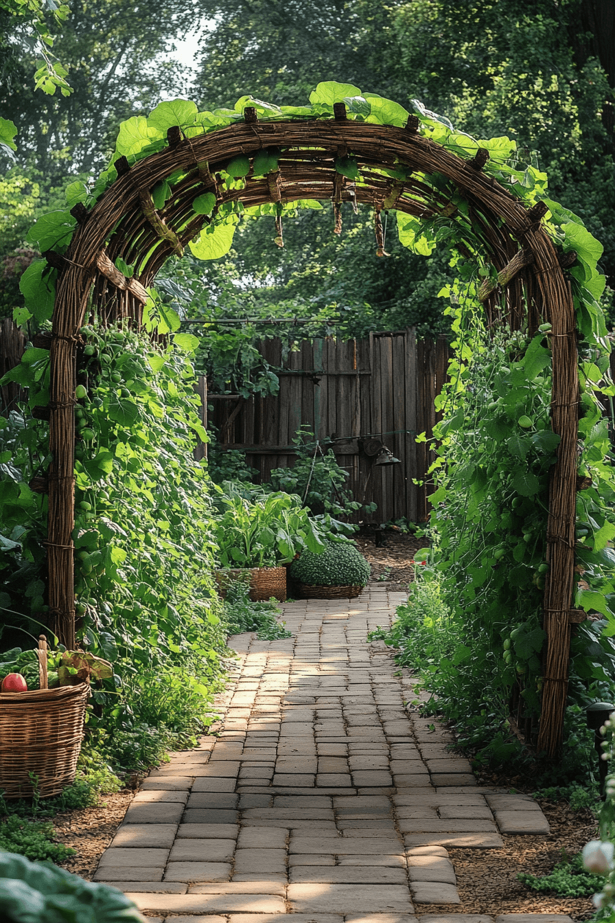 Blending beauty with practicality, garden arbor ideas that support edible plants are both useful and visually appealing. Climbing vegetables like beans, peas, or tomatoes can grow along the structure, creating a lush and productive display. A sturdy frame ensures everything stays supported as plants mature. This type of arbor adds greenery while also providing fresh ingredients right at your fingertips. It’s a smart and rewarding garden upgrade. Tap to uncover more garden arbor ideas with edible benefits.