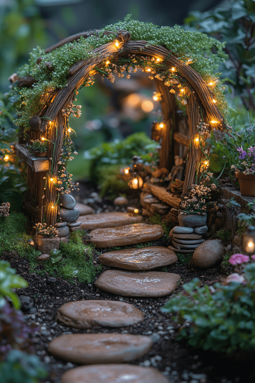 Step into a storybook setting with garden arbor ideas designed around a whimsical fairy theme. Tiny details like miniature doors, soft lighting, and charming figurines bring the space to life. Delicate climbing plants such as ivy or clematis enhance the magical atmosphere. As evening falls, gentle lighting adds an enchanting glow. It’s a perfect addition for creative gardens or playful outdoor spaces. Click to discover more garden arbor ideas with a magical twist.