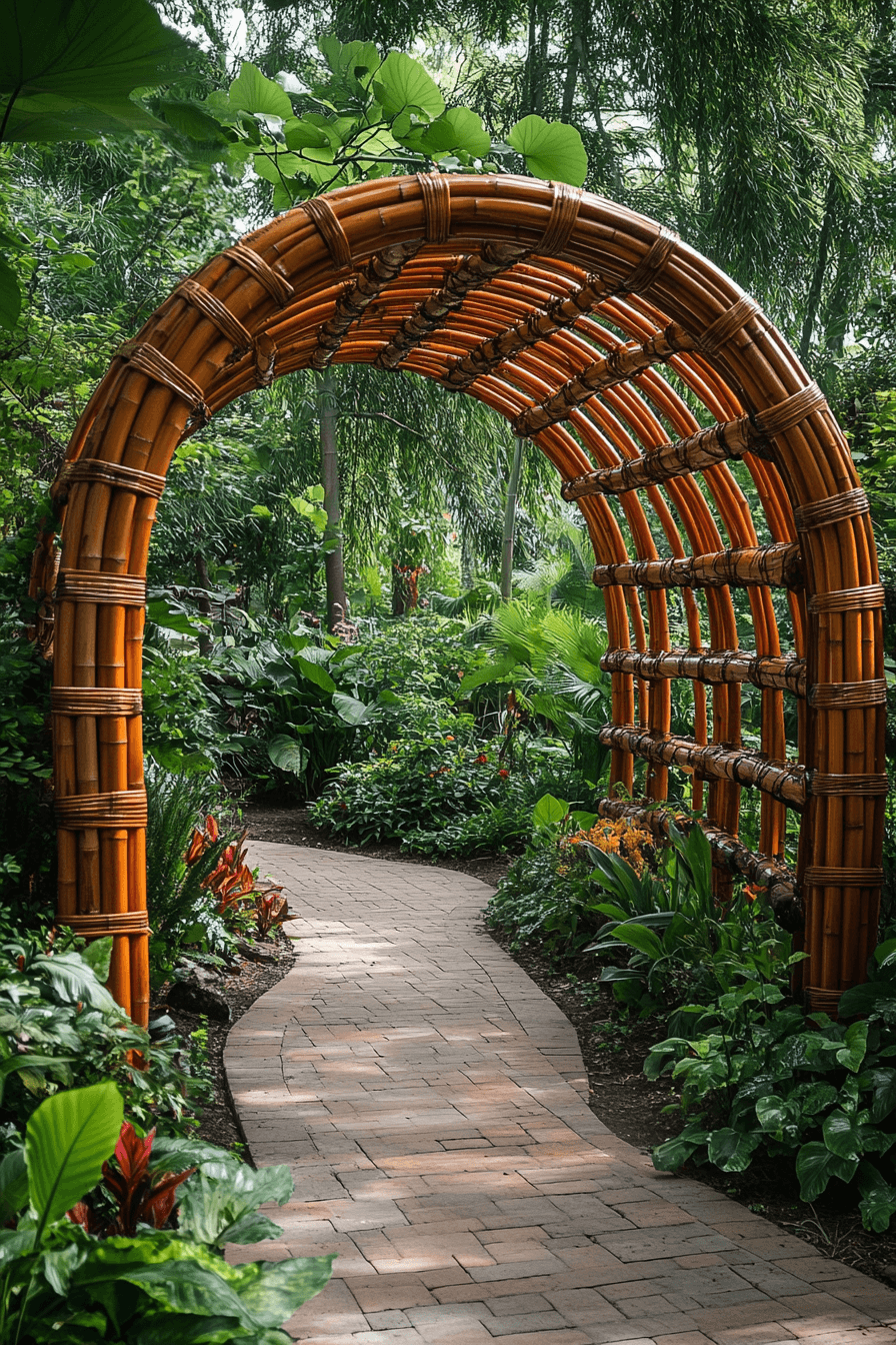 Sustainable style shines through with garden arbor ideas that use natural bamboo for a fresh and eco-friendly look. Bamboo’s strength and flexibility make it ideal for creating unique arch designs that feel both modern and organic. Its natural texture blends beautifully into lush greenery while supporting climbing plants with ease. This approach adds a subtle tropical touch without overwhelming the space. It’s a smart choice for environmentally conscious gardens. Click to discover more garden arbor ideas with natural materials.