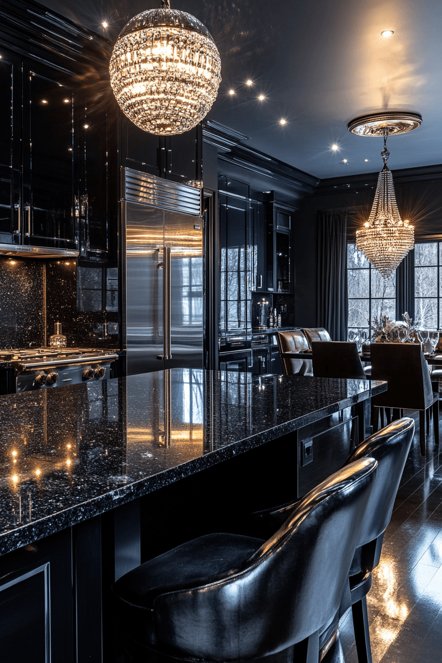 Deep, dramatic tones define granite countertops with a rich black base accented by soft silver veining, creating a bold yet refined statement. This striking look works beautifully in both modern and classic spaces, giving you flexibility in design. Whether used in a kitchen or bathroom, it instantly elevates the entire room. The durability of granite ensures it stays stunning through everyday use. It’s the perfect choice for those who love timeless elegance with a touch of drama. Tap to explore more granite countertops that make a statement.