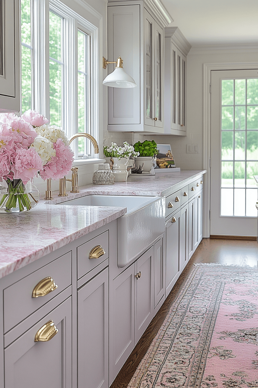 A gentle blush tone brings a soft and inviting feel to granite countertops, enhanced by subtle veining in white and gray. This delicate color adds personality without overwhelming the space, making it perfect for serene interiors. It pairs effortlessly with light cabinetry for a calm, cohesive look. Durable and easy to maintain, granite ensures long-lasting beauty. The overall effect feels fresh, airy, and elegant. Discover more granite countertops with soft, feminine hues.