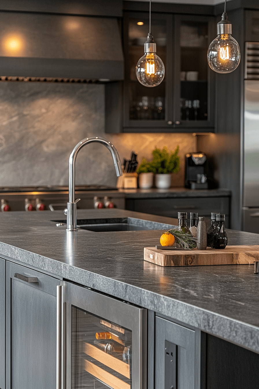 Dark gray surfaces inspired by natural stone give granite countertops a grounded and elegant appeal. Subtle variations in tone add depth while maintaining a smooth, cohesive look. This muted palette complements a wide range of interior styles, from rustic to modern. It provides a calming backdrop that enhances the rest of the space. Built to last, granite ensures durability with minimal upkeep. Click to explore more granite countertops with natural, understated beauty.
