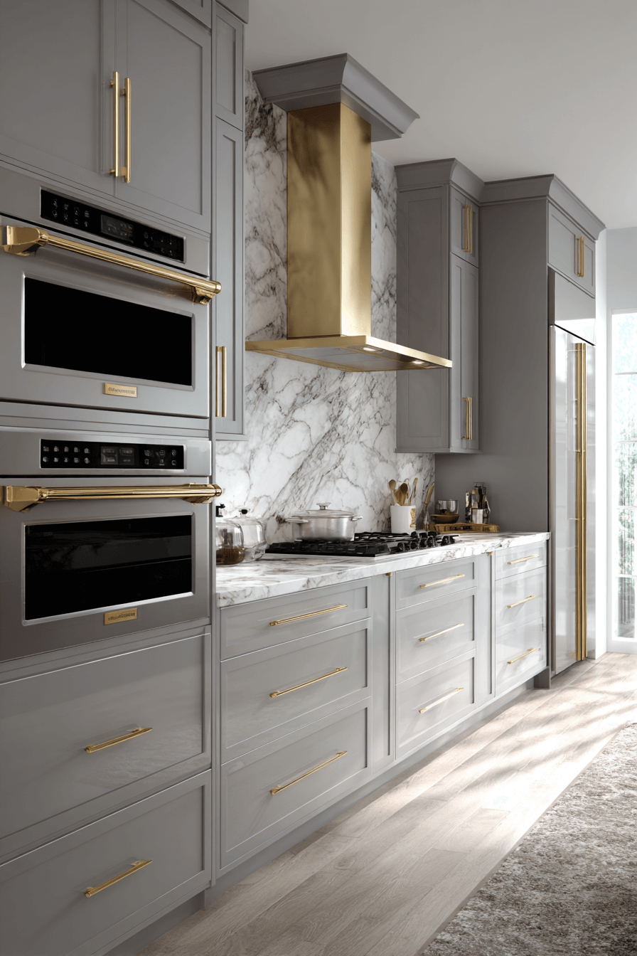Oyster-inspired gray kitchen cabinets bring a refined elegance that feels both luxurious and approachable. The soft, luminous gray tone adds richness without feeling heavy. These cabinets shine when paired with gold hardware, marble surfaces, or glossy finishes. The look feels upscale yet welcoming at the same time. Oyster gray is perfect for kitchens that aim to impress without trying too hard. Explore oyster gray kitchen cabinets and elevate your space with quiet luxury!
