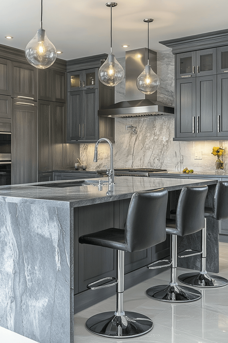 Stormy gray kitchen cabinets offer a moody, immersive vibe that feels like a cozy raincloud wrapped around your kitchen. Their deep shade creates depth and quiet sophistication, perfect for contemplative, grounded spaces. Stormy gray works wonderfully with soft lighting, velvety textures, and dramatic backsplashes. It turns any kitchen into a design-forward haven of comfort. The ambiance is both calming and captivating. Tap into stormy gray kitchen designs that soothe and inspire!