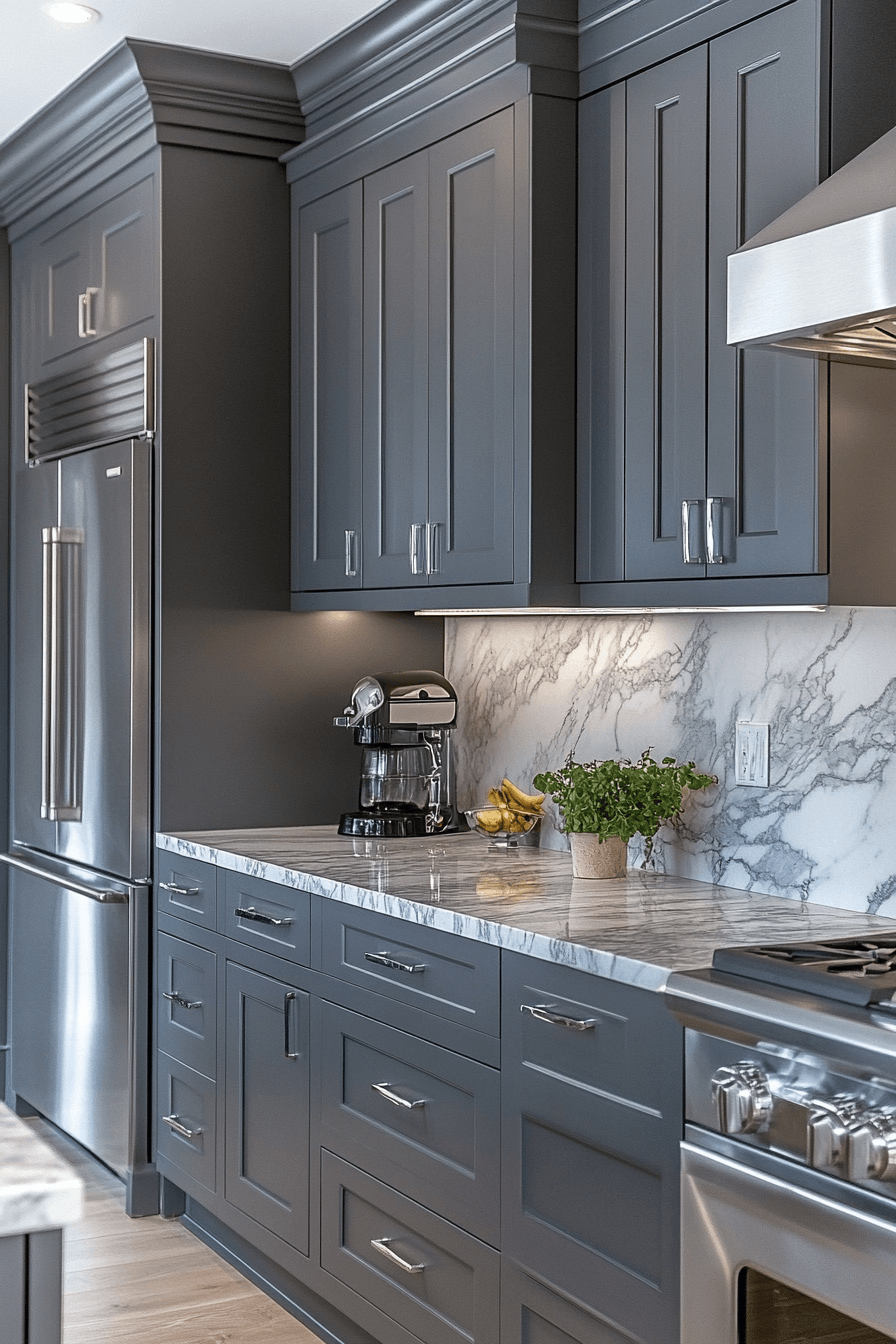 Stormy gray kitchen cabinets offer a moody, immersive vibe that feels like a cozy raincloud wrapped around your kitchen. Their deep shade creates depth and quiet sophistication, perfect for contemplative, grounded spaces. Stormy gray works wonderfully with soft lighting, velvety textures, and dramatic backsplashes. It turns any kitchen into a design-forward haven of comfort. The ambiance is both calming and captivating. Tap into stormy gray kitchen designs that soothe and inspire!