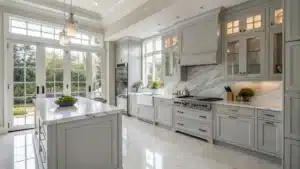 Oyster-inspired gray kitchen cabinets bring a refined elegance that feels both luxurious and approachable. The soft, luminous gray tone adds richness without feeling heavy. These cabinets shine when paired with gold hardware, marble surfaces, or glossy finishes. The look feels upscale yet welcoming at the same time. Oyster gray is perfect for kitchens that aim to impress without trying too hard. Explore oyster gray kitchen cabinets and elevate your space with quiet luxury!