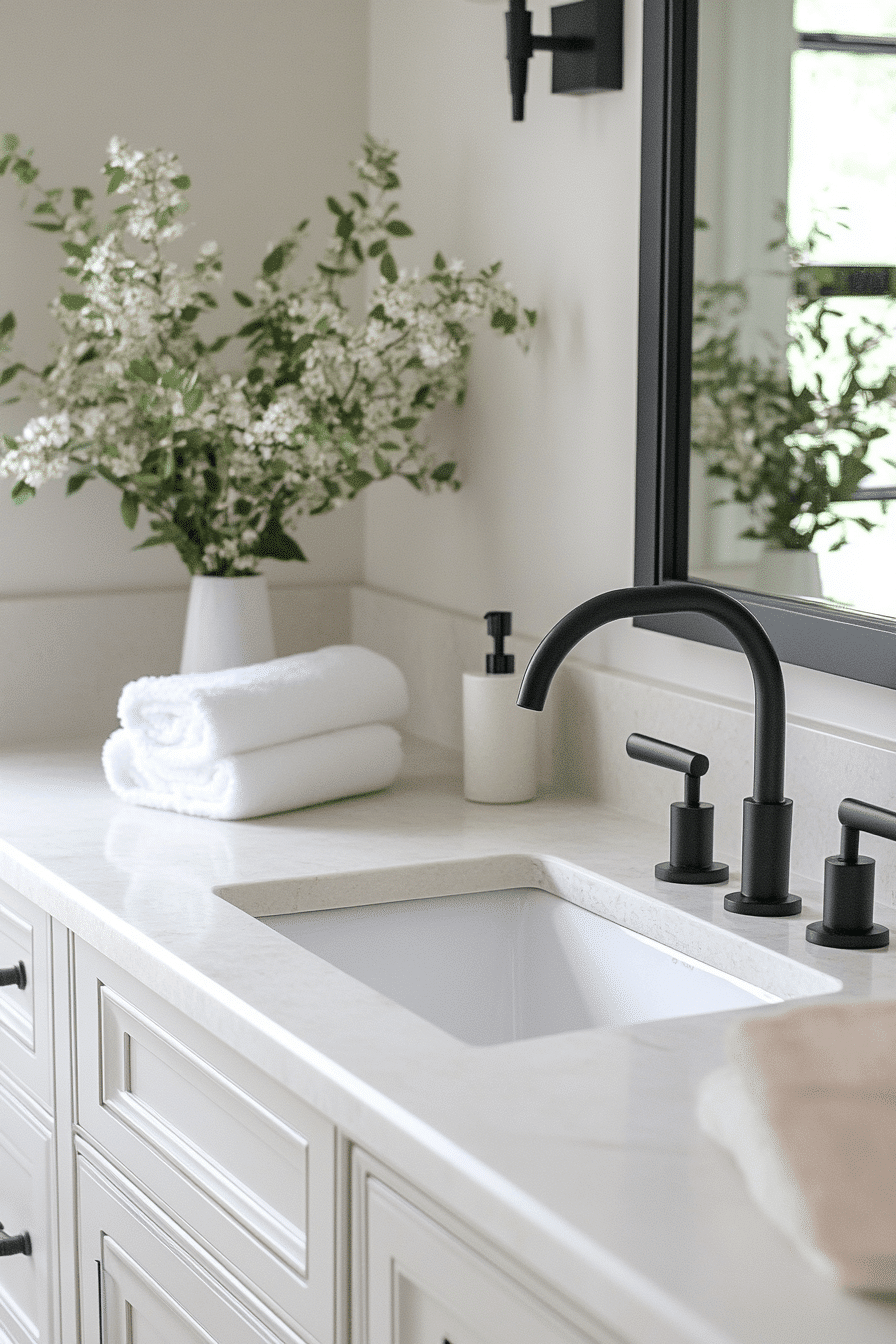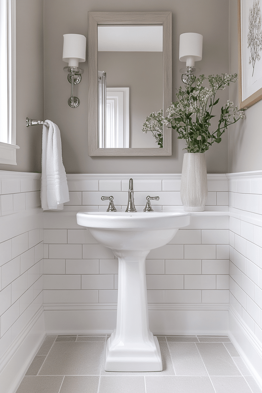A monochromatic palette creates a calm and cohesive environment that feels both modern and timeless. These guest bathroom ideas focus on layering shades within the same color family, such as soft grays, warm creams, or muted taupes. Instead of relying on bold colors, the design builds interest through textures and finishes. This approach results in a polished, thoughtfully curated look. It’s perfect for anyone who loves a clean and understated aesthetic. Take a moment to explore more monochrome guest bathroom ideas for a refined feel.