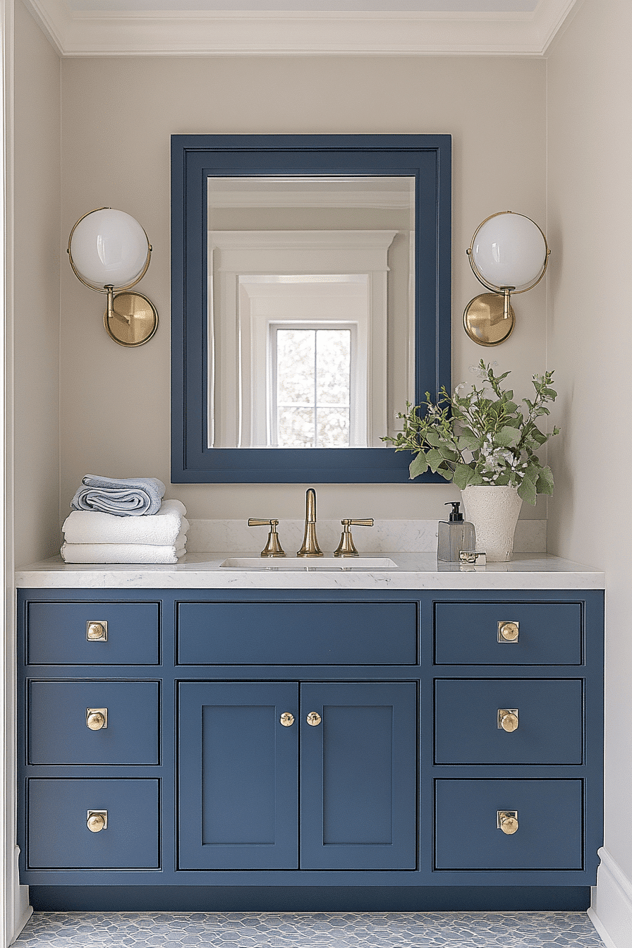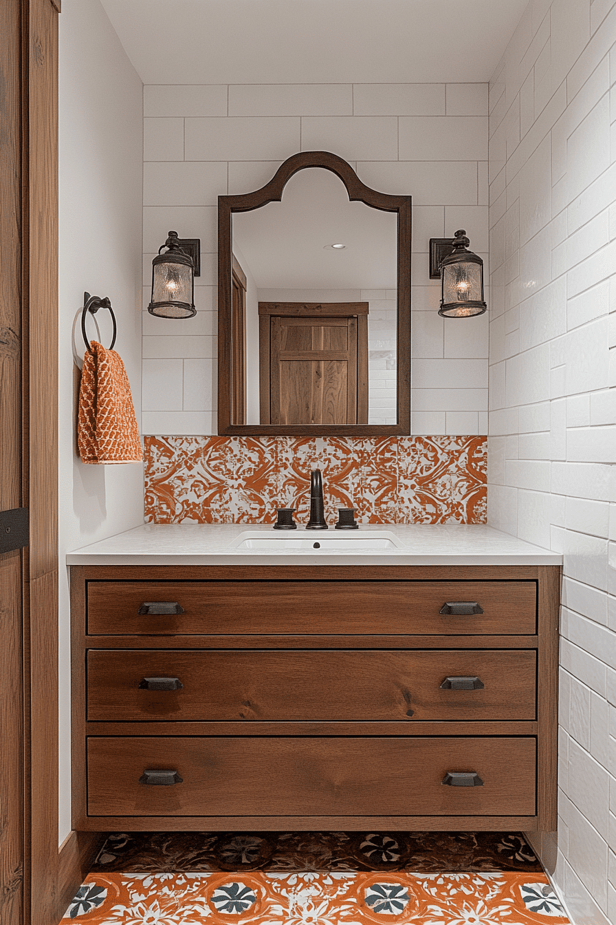 Adding bold accents is a simple way to inject personality and charm into your space without a full renovation. These guest bathroom ideas highlight features like geometric mirrors, eye-catching lighting, or vibrant backsplash tiles to create instant impact. Even a single standout element can completely transform the mood of the room. Keeping the rest of the design minimal allows those details to truly shine. The result feels fun, stylish, and memorable for any visitor. Get inspired by these bold guest bathroom ideas and elevate your space effortlessly.