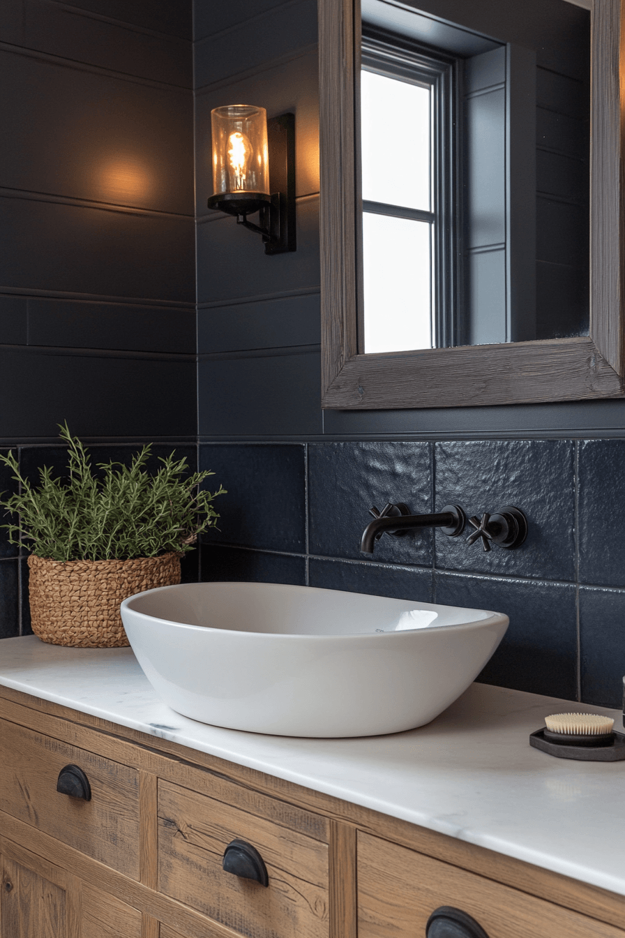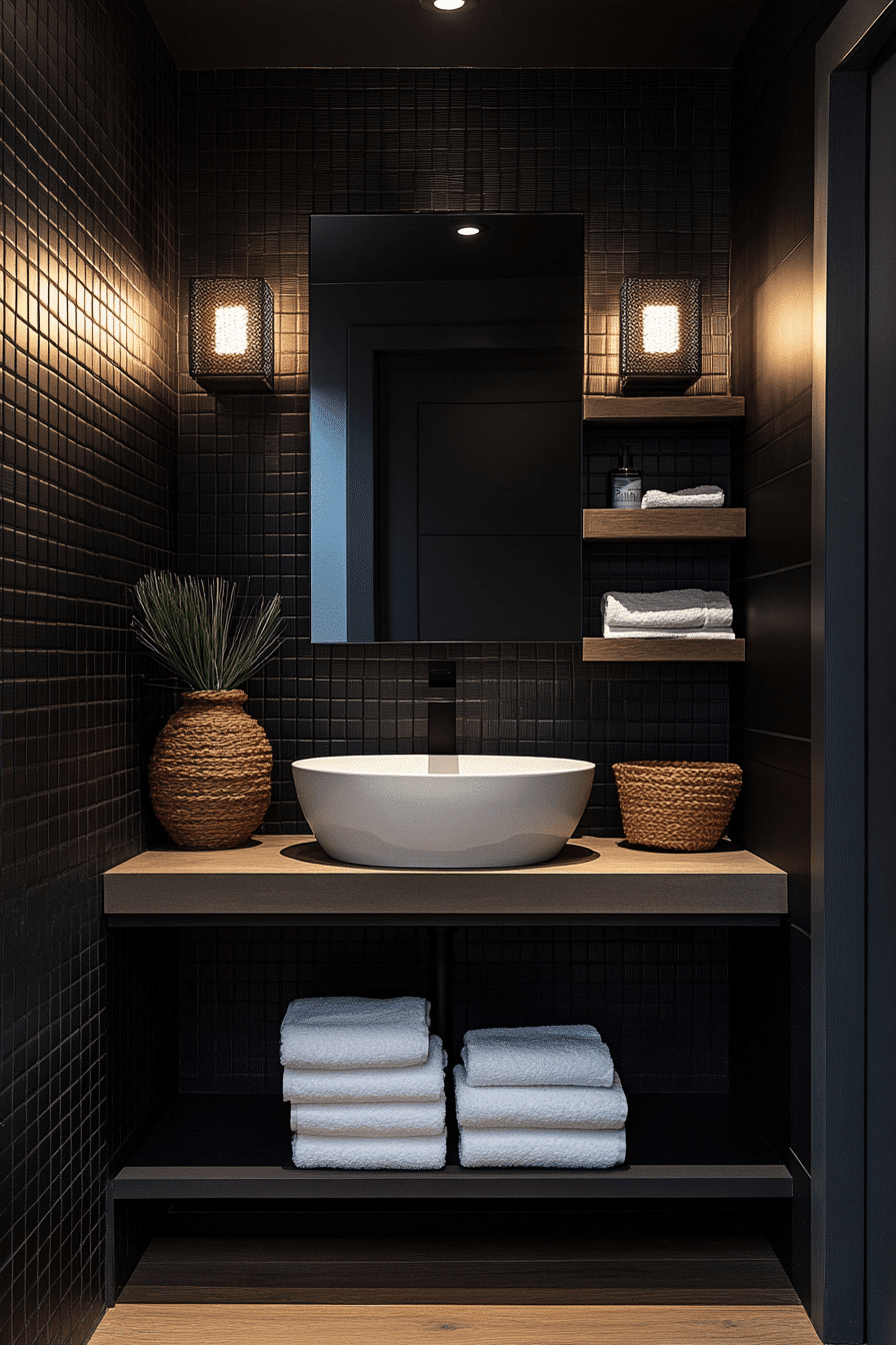 Bold contrasts can create a striking yet balanced design that feels both modern and timeless. These guest bathroom ideas mix dark and light elements to build visual interest and depth. Statement lighting and standout fixtures add a dramatic touch. Keeping some neutral or warm accents ensures the space stays inviting. The end result feels bold without being overwhelming. Find more high-contrast guest bathroom ideas that make a statement.
