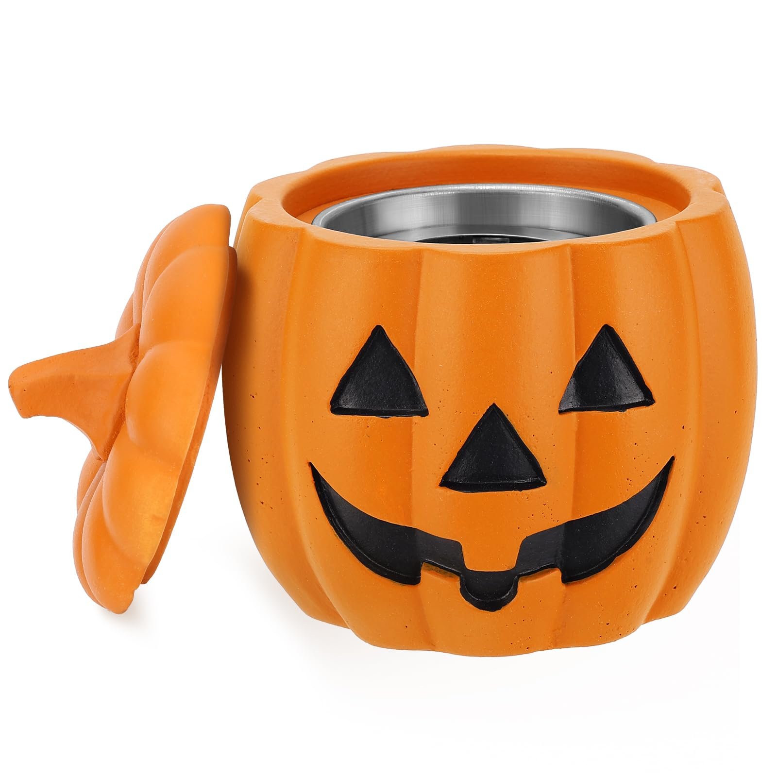 We liked how this pumpkin looked on our entry table. The concrete base gave it a stable feel, and the stainless steel cup inside added a nice contrast. It didn’t look cheap or overly shiny, which made it blend in nicely with other fall decorations.