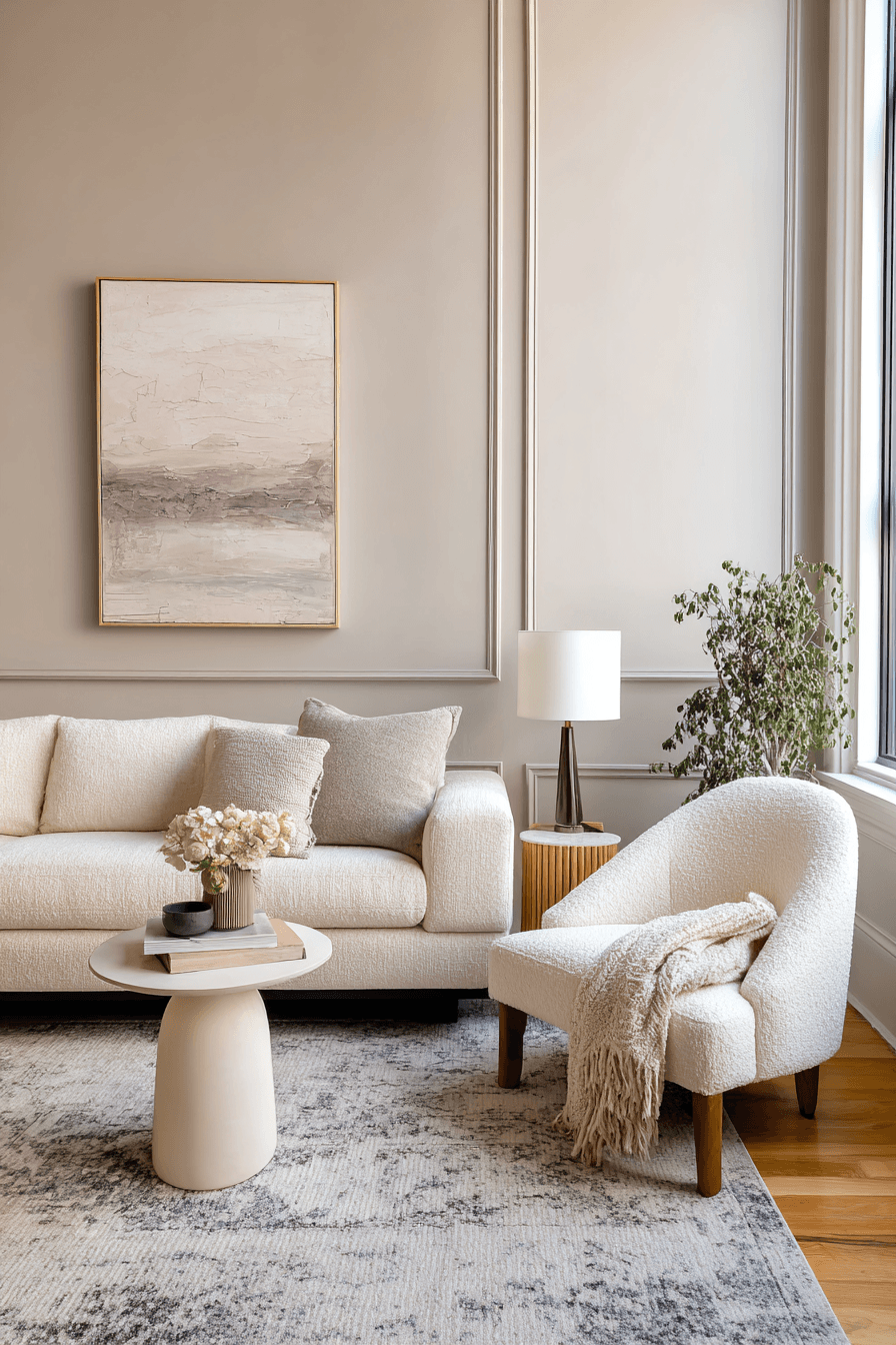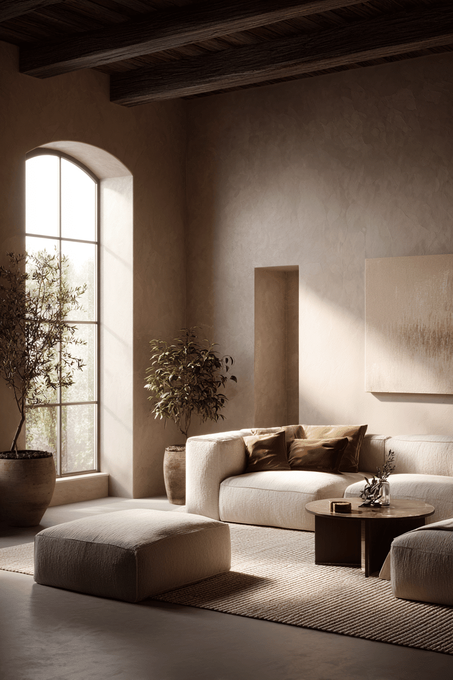 A japandi living room can feel like a calming retreat when built around soft neutral tones and streamlined furniture. Shades of beige, taupe, and gray work together to create a balanced and soothing environment. The simplicity of the palette helps reduce visual noise, making the space feel peaceful and grounded. It’s an ideal setup for relaxing, thinking, or simply unwinding. The overall vibe feels effortless and serene. Tap to explore more japandi living room ideas with neutral tones.
