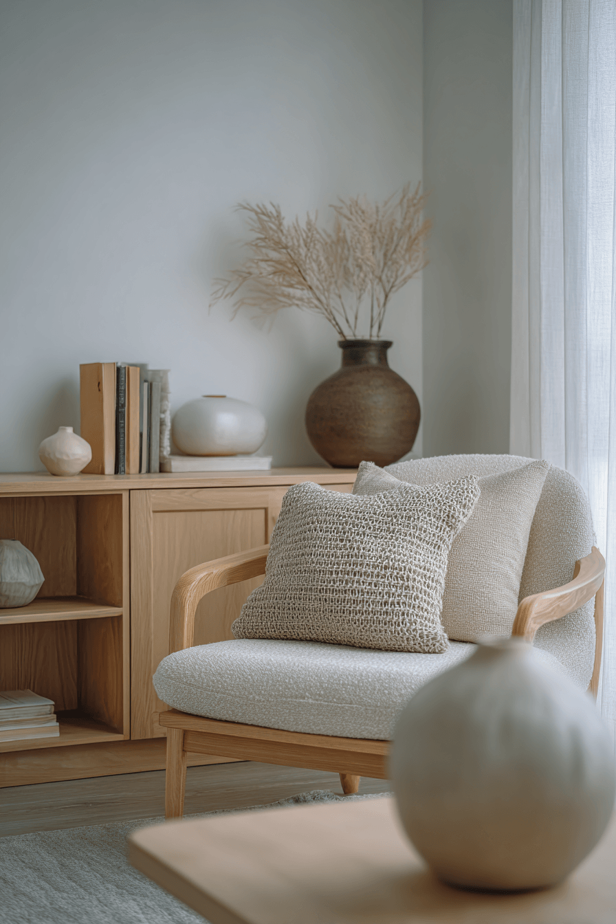 Creating a cozy escape, a japandi living room can become your personal sanctuary with soft fabrics and gentle, muted colors. Plush textures and minimal styling make the space feel warm without losing its clean aesthetic. It’s a perfect corner for reading, journaling, or enjoying quiet moments alone. The design encourages comfort while keeping everything visually calm. The result feels inviting, peaceful, and beautifully simple. Click to discover more japandi living room inspiration for cozy spaces.