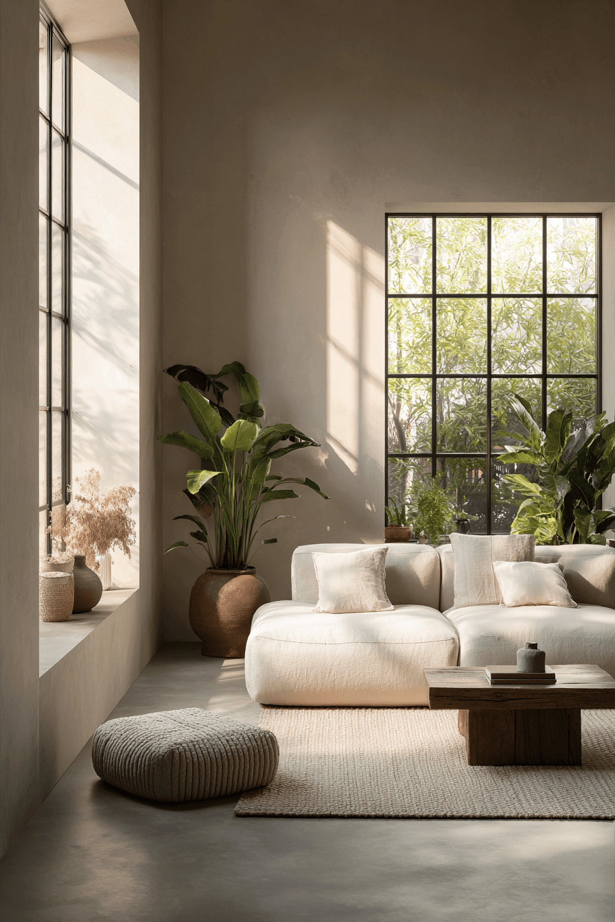 A japandi living room can highlight the beauty of simplicity by letting open space and architecture take center stage. High ceilings, minimal decor, and understated furnishings create a sense of quiet luxury. The room feels spacious and refined without being overwhelming. It’s perfect for both relaxed evenings and hosting with ease. The design celebrates less while still feeling elevated. Tap to see more japandi living room ideas with a simple yet elegant feel.