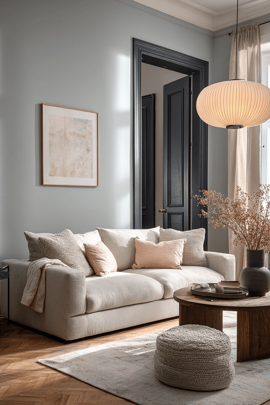 Inspired by nature, a japandi living room can bring the beauty of the outdoors inside through earthy tones and organic shapes. Subtle greens, warm browns, and soft blues create a grounded and calming palette. Simple furnishings made from natural materials enhance the connection to nature. The overall feel is peaceful, balanced, and deeply relaxing. It’s like having a quiet landscape right in your living space. Explore more japandi living room ideas inspired by natural elements.