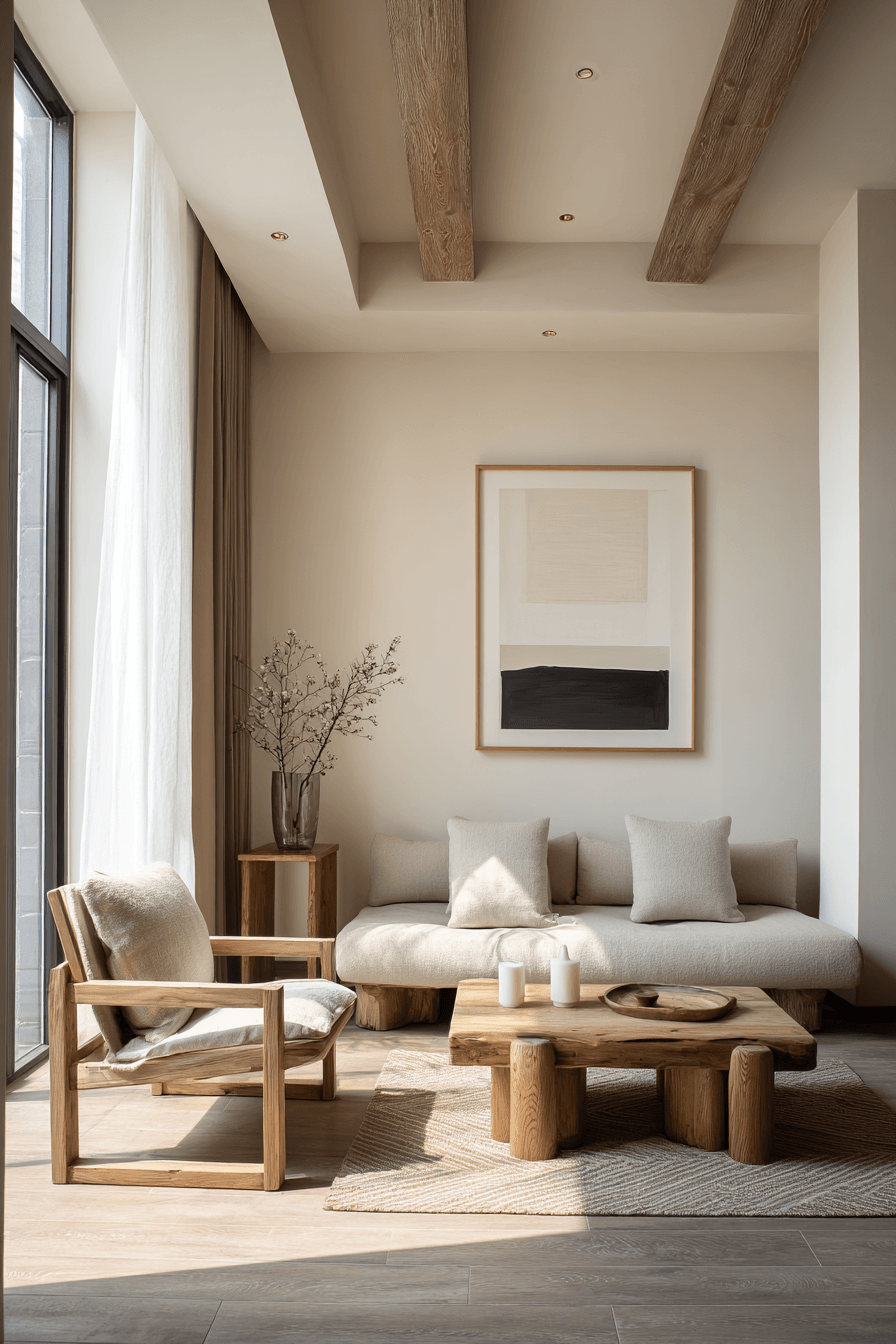 A Japandi living room brings together the best of Japanese and Scandinavian design, creating a space that is both minimalist and warm. These ideas show how to blend natural materials, neutral palettes, and functional beauty for a living area that feels serene, inviting, and timelessly elegant.