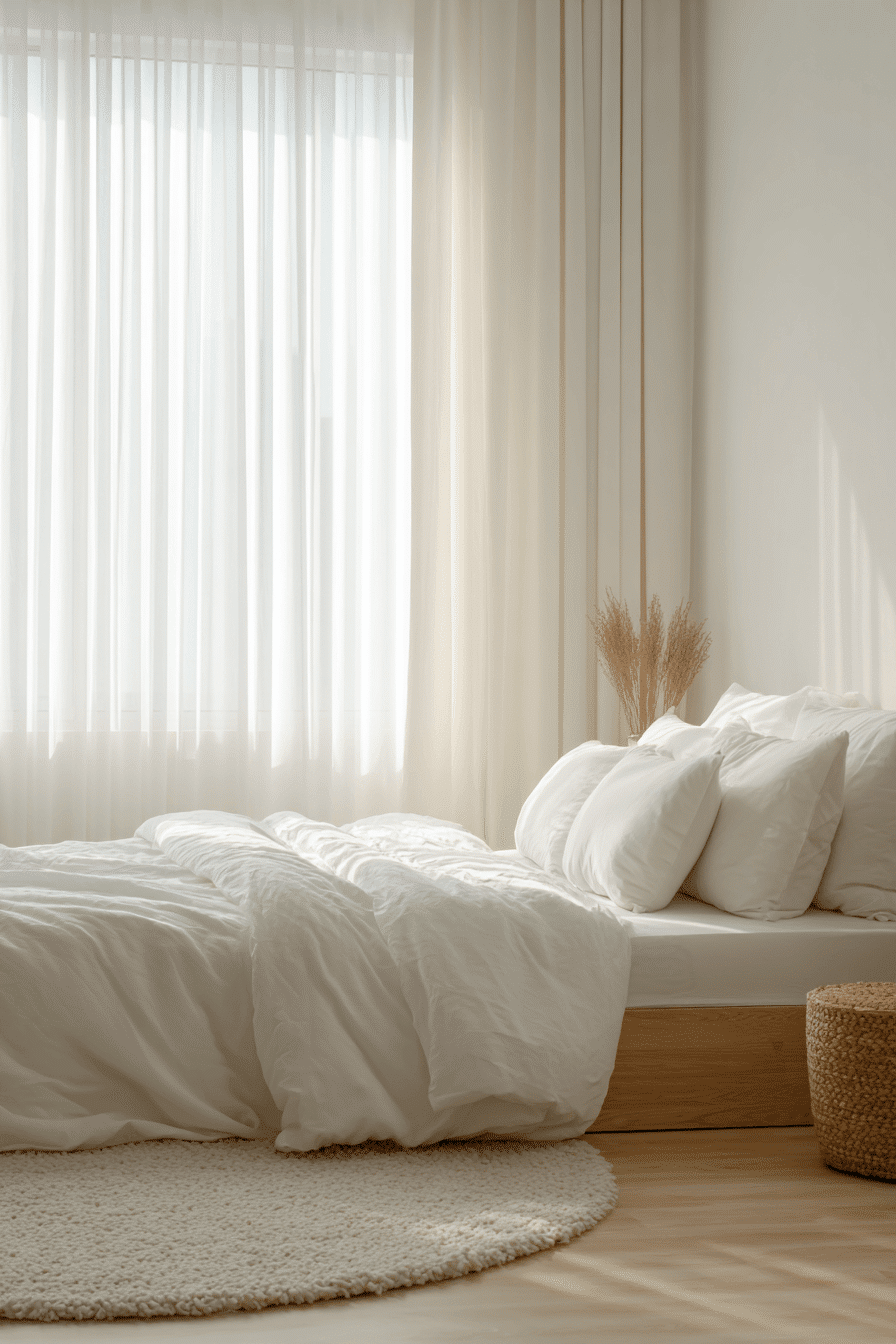 A japandi small bedroom can feel effortlessly calm when designed with a palette of soft neutral tones that brighten and open up the space. Gentle beiges, warm whites, and muted hues work together to create a peaceful, airy atmosphere. Simple decor keeps the room uncluttered while enhancing that sense of tranquility. The overall effect feels spacious, relaxing, and easy to unwind in. It’s a perfect choice for creating a serene everyday retreat. Tap to explore more japandi small bedroom ideas with calming neutral tones.