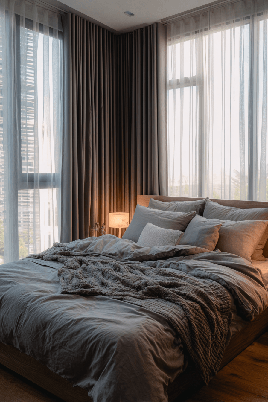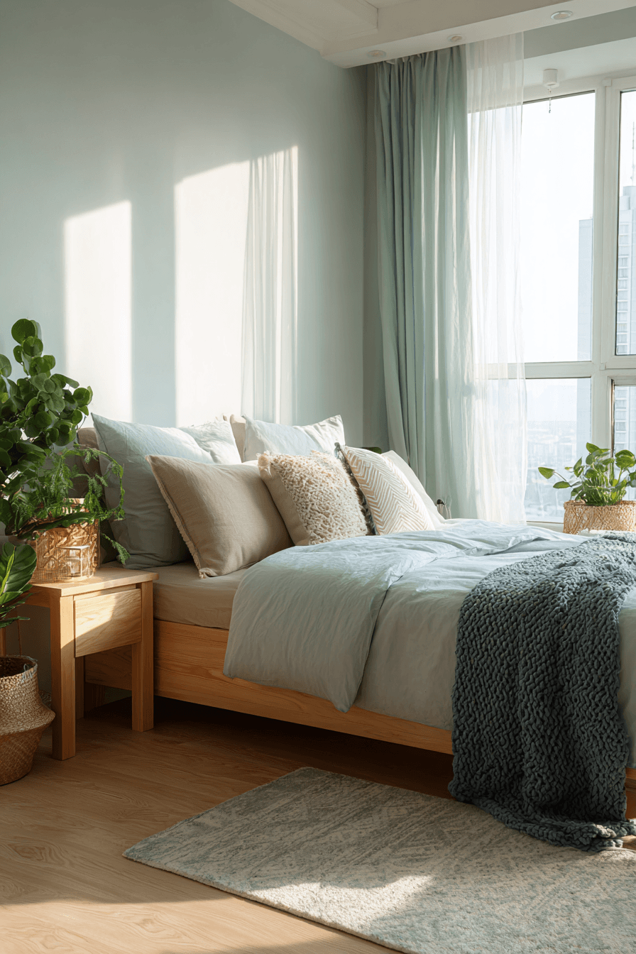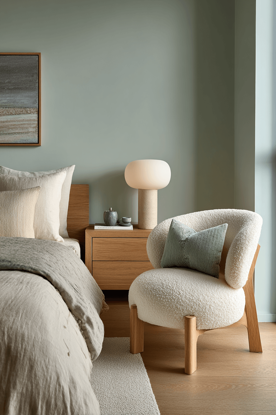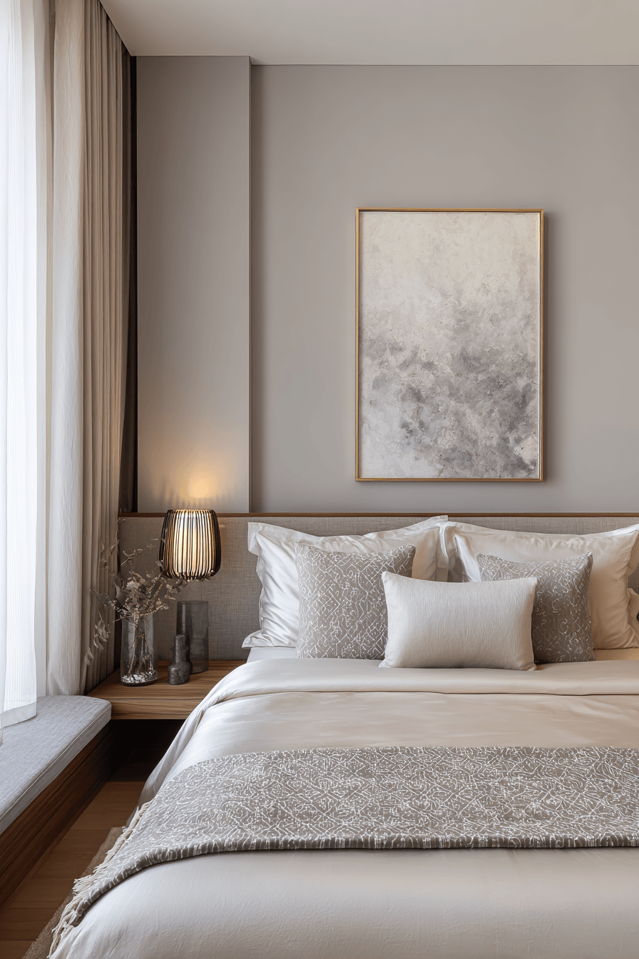 A japandi small bedroom can feel softer and more welcoming when gentle geometric shapes are introduced throughout the design. Rounded edges, curved furniture, and subtle patterns add a layer of comfort to the minimalist aesthetic. These shapes balance the clean lines, making the space feel more relaxed and approachable. The overall look stays modern while gaining a cozy touch. It’s a perfect blend of structure and softness. Click to uncover more japandi small bedroom ideas with soft geometry.