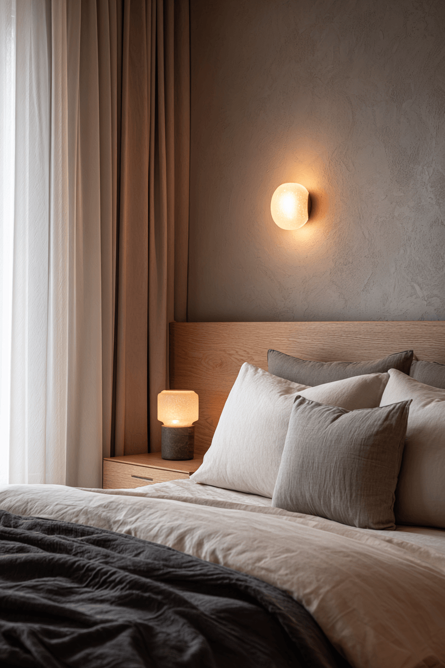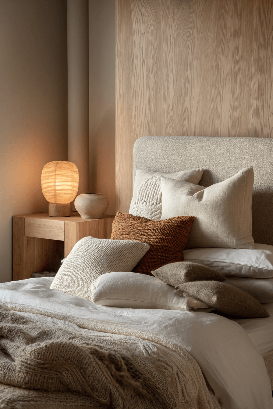 A japandi small bedroom can glow with warmth when soft, diffused lighting fills the space. Light tones and reflective surfaces help bounce natural light around, making the room feel bigger and brighter. The gentle illumination creates a calm, airy atmosphere that’s perfect for relaxation. Every detail works together to enhance the sense of openness. It’s an ideal setup for a peaceful and uplifting bedroom. Discover more japandi small bedroom inspiration with beautiful lighting.