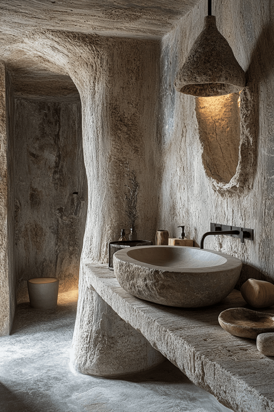 Embrace imperfect beauty with this soulful **japanese bathroom** that celebrates the gorgeous wabi-sabi philosophy! Raw, weathered wood and uneven stone add so much authentic character and visual interest to the space. Aged metal accents bring a touch of rustic charm that feels effortlessly calming and intentional. Gentle lighting allows all these beautiful natural textures to truly shine and tell their story. The result is organic, peaceful, and perfectly imperfect in the most stunning way. Click to explore more **japanese bathroom** designs inspired by this beautiful approach to living!