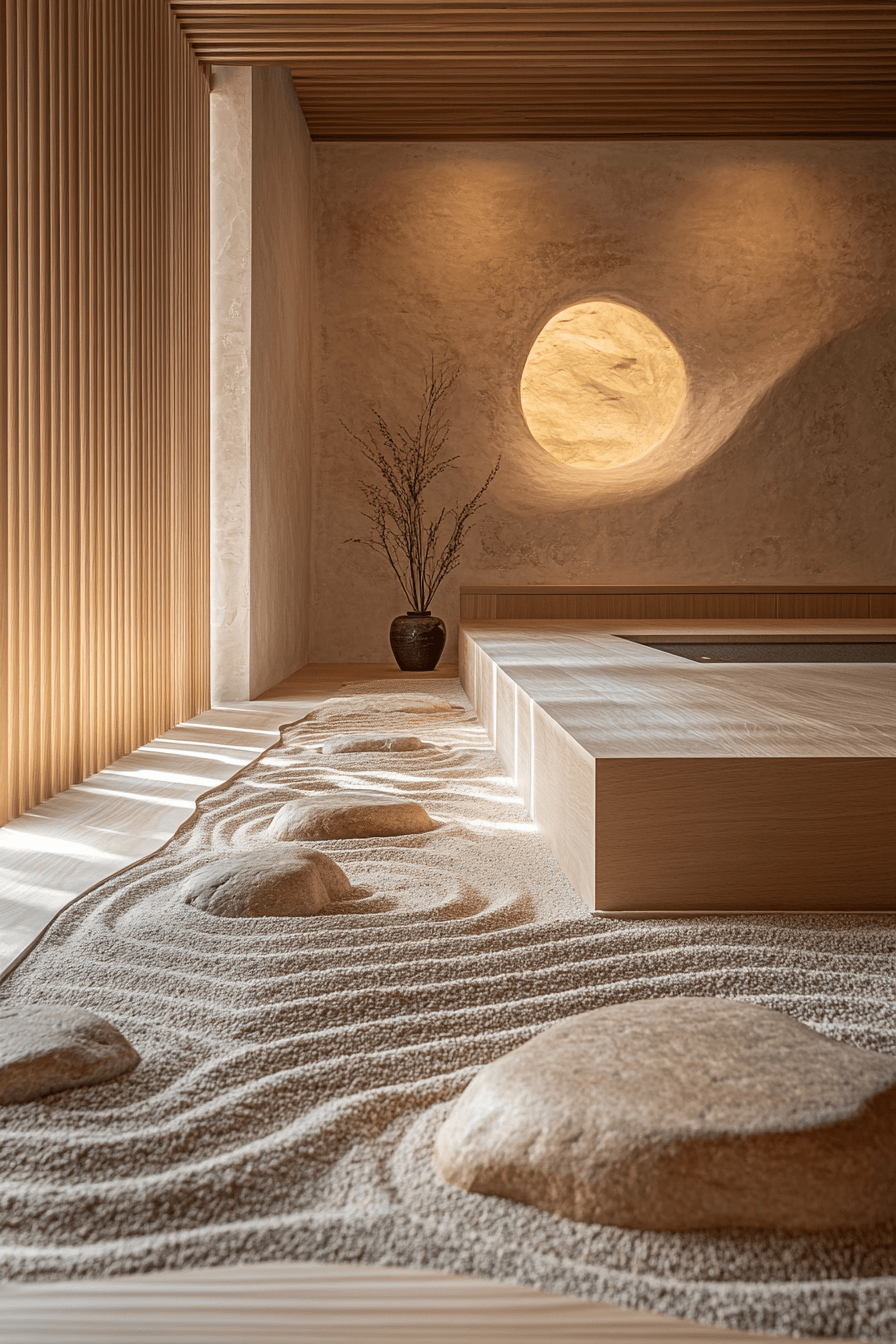Find your zen in this peaceful **japanese bathroom** inspired by the calming beauty of rock gardens! Pebble flooring and carefully arranged stones bring such a natural, meditative quality to the space. Subtle design elements mimic raked sand patterns, adding gorgeous visual interest without any clutter. The clean layout and soothing neutral tones create the perfect environment for mindful routines. This grounded design feels so deeply relaxing and visually balanced in every way. Click to discover more **japanese bathroom** designs inspired by these serene Zen gardens!