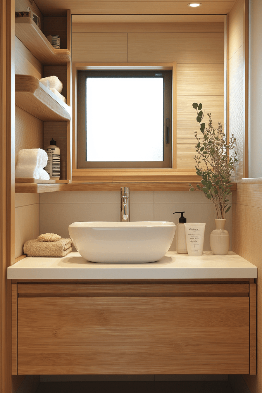 Brighten your day with this fresh and uplifting **japanese bathroom** that celebrates bamboo in all its natural glory! The light bamboo finishes bring such gorgeous warmth and texture while keeping the whole space feeling bright and breezy. Natural materials create an energizing yet relaxing environment that’s perfect for morning routines and evening wind-downs alike. The clean, uncluttered styling lets every beautiful detail shine through without overwhelming your senses. This sustainable approach feels so refreshing and modern while staying true to organic beauty. Pin this light-filled **japanese bathroom** and bring nature’s warmth into your home!