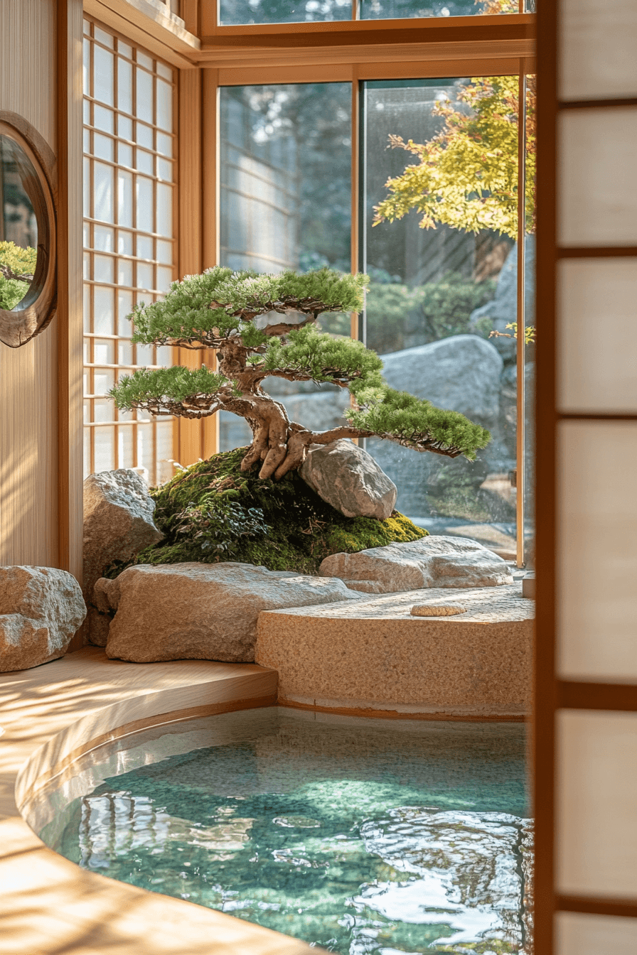 Bring artistry to life in this nature-centered **japanese bathroom** featuring stunning bonsai-inspired elements! Miniature trees create such gorgeous focal points while adding a beautiful sense of calm and intention. Paired with warm wood, natural stone, and earthy textures, the design feels perfectly grounded and harmonious. The balance between nature and structure creates a peaceful, visually captivating environment. Every detail celebrates thoughtful design and the beauty of the natural world. Explore more **japanese bathroom** ideas that showcase this incredible natural elegance!