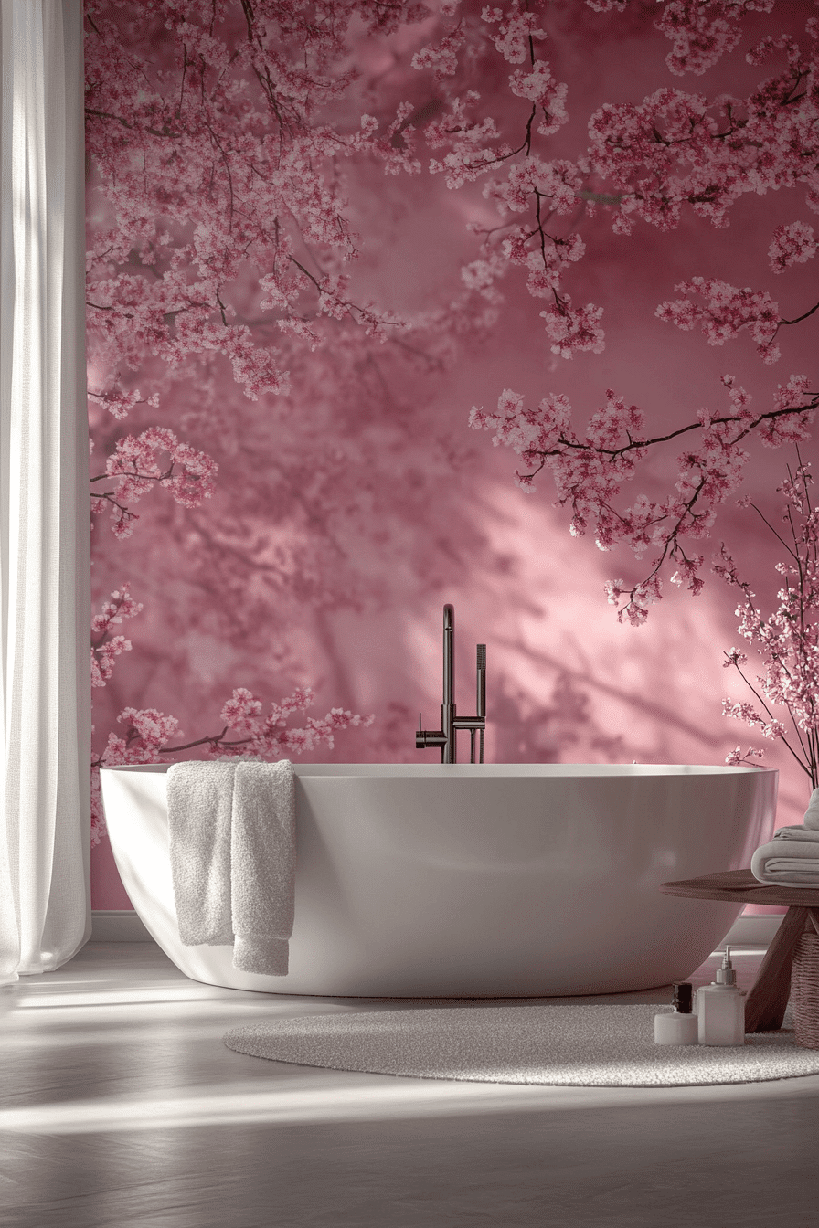 A soft and dreamy japanese bathroom can highlight the delicate charm of cherry blossom inspiration through gentle colors and floral details. Light pinks, whites, and airy textures create an uplifting and peaceful setting. Subtle patterns and fresh scents enhance the sensory experience, making the space feel calm and inviting. The overall design captures a fleeting, romantic beauty that feels both refreshing and serene. It’s a lovely way to bring elegance into everyday routines. Click to find more japanese bathroom ideas with a soft floral vibe.