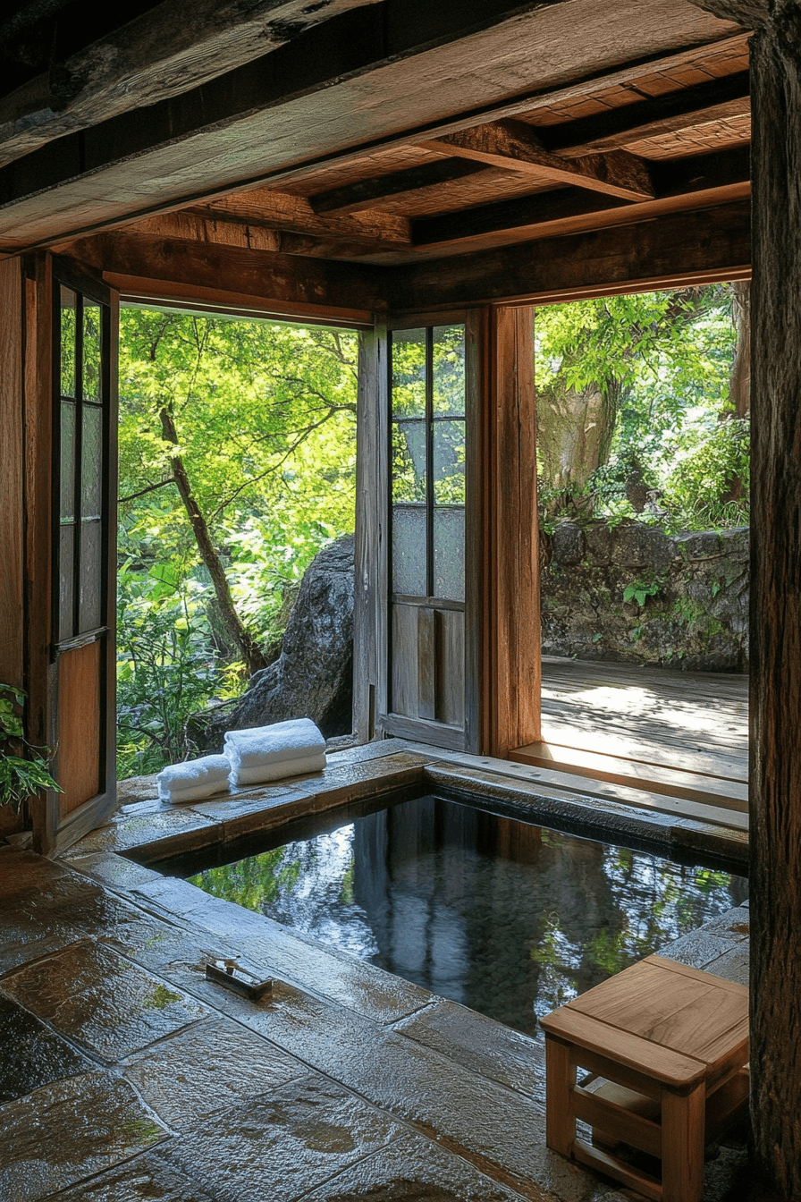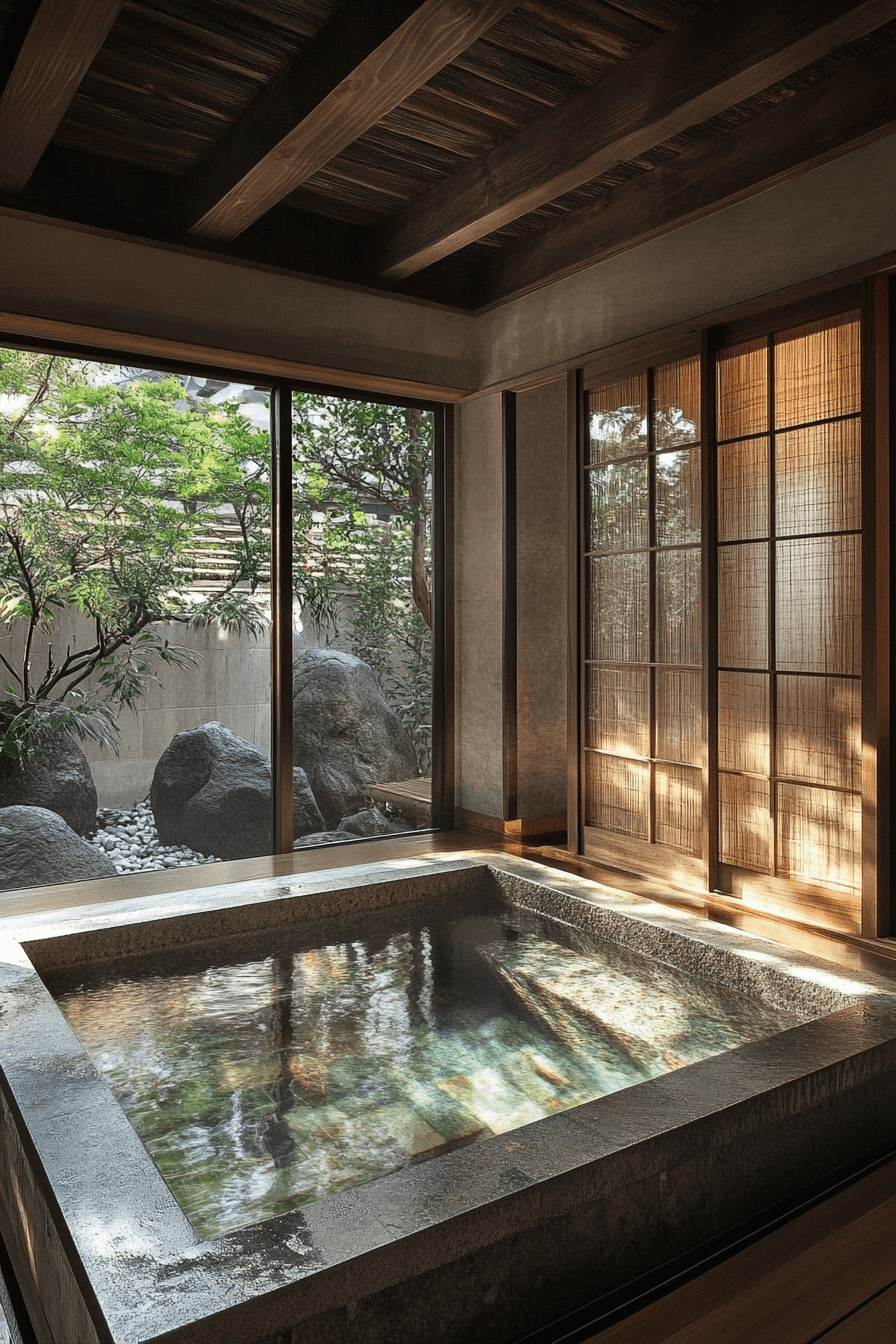 Imagine soaking away your stress in this absolutely dreamy **japanese bathroom** that captures the magic of a natural hot spring! That deep, luxurious soaking tub takes center stage, beautifully surrounded by warm wood and textured stone that feel so grounding and organic. Gentle steam rising through soft lighting creates the most peaceful, spa-like atmosphere you could dream of. The soothing sound of flowing water adds another layer of pure relaxation that melts your worries away. Every detail in this space is designed to help you completely unwind and restore your energy. Tap to save this incredible **japanese bathroom** retreat and bring the onsen experience home!