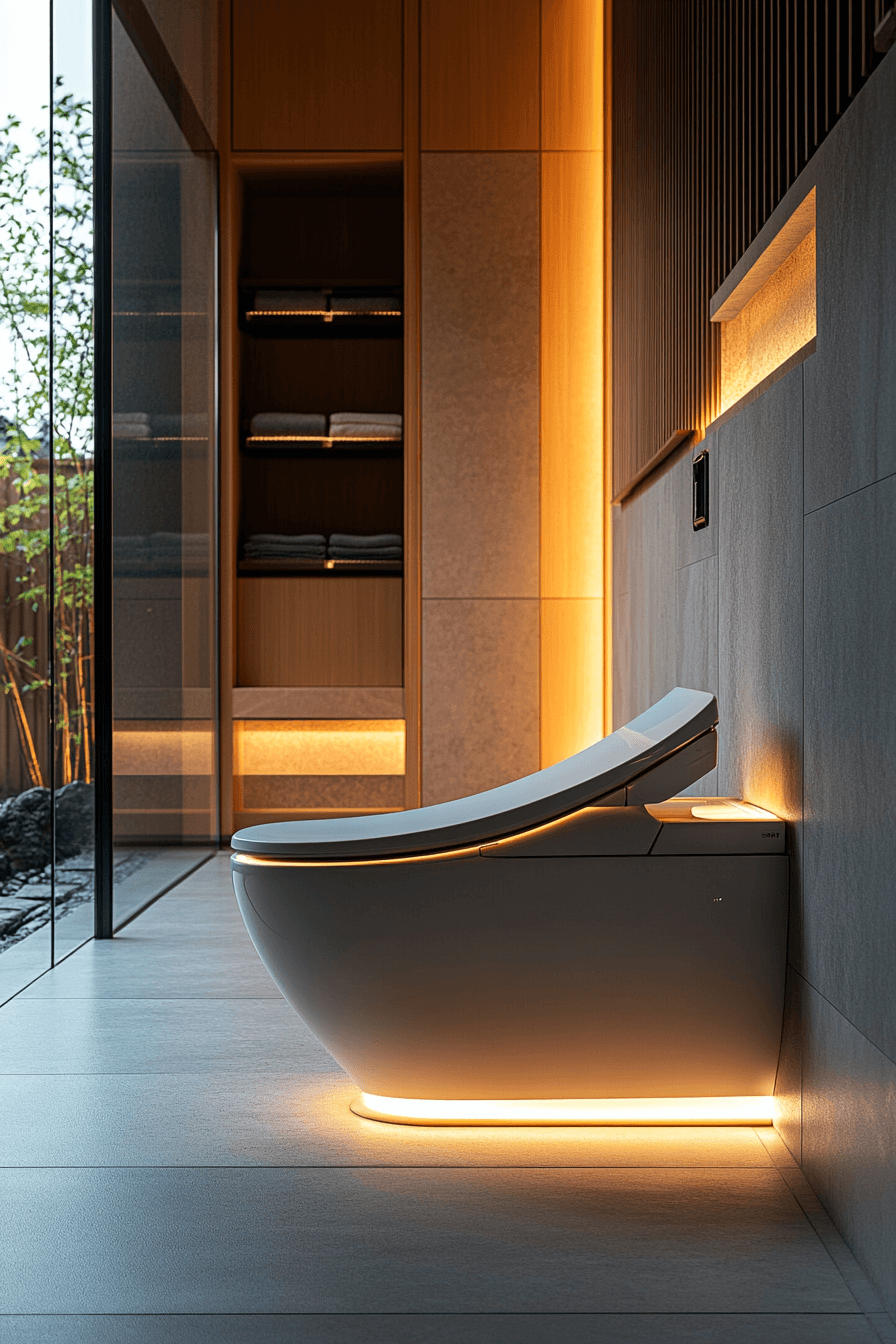 A modern japanese bathroom beautifully blends sleek innovation with timeless design elements. Clean geometric lines, monochrome tones, and high-tech features create a polished, contemporary look. Reflective surfaces and glass accents make the space feel open and airy. Smart functionality meets minimalist aesthetics for a truly elevated experience. This style is perfect for anyone who loves a cutting-edge yet serene environment. Tap to see more modern japanese bathroom inspiration.