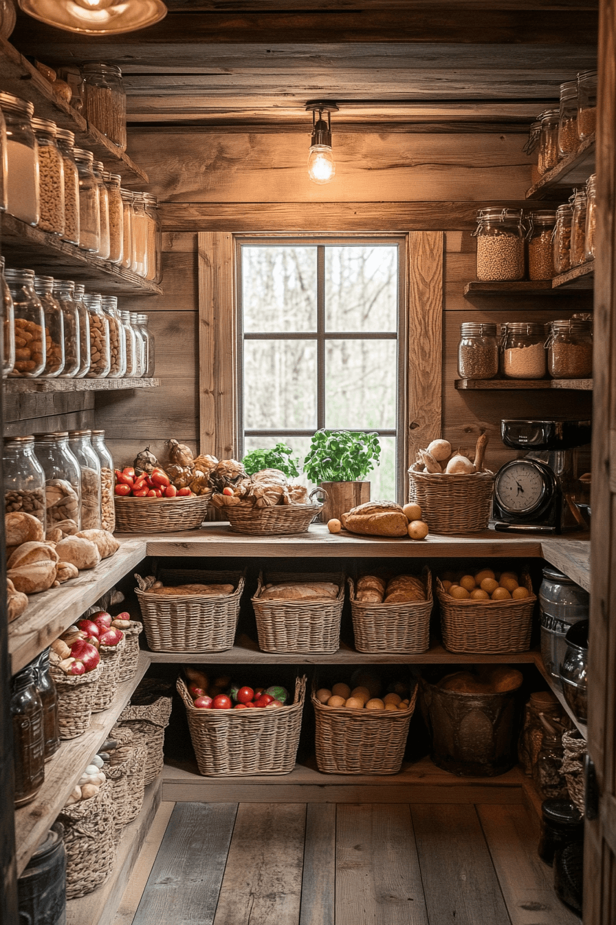 Keep your kitchen organized and stylish with little cabin decor focused on a peak pantry design. Open shelves lined with jars, baskets, and wooden crates make storage beautiful. Sliding barn doors hide clutter while adding rustic appeal. Everything feels functional yet full of charm.