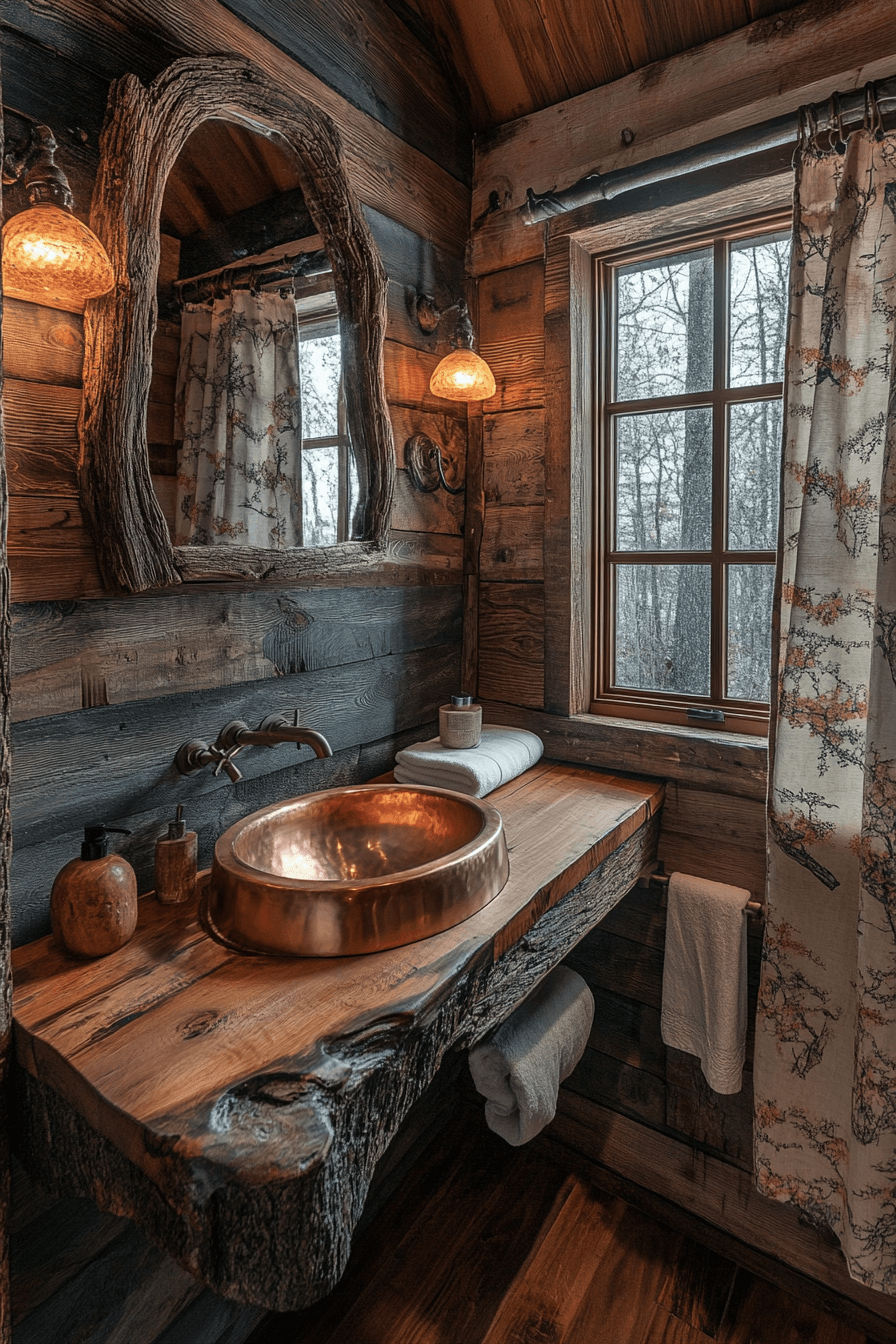 Transform your bathroom into a nature-inspired escape with little cabin decor that defines wilderness luxury. Wooden sinks, copper fixtures, and stone tiles evoke the charm of outdoor spas. Earth-toned towels and subtle lighting complete the look beautifully. Every element feels grounded and organic.