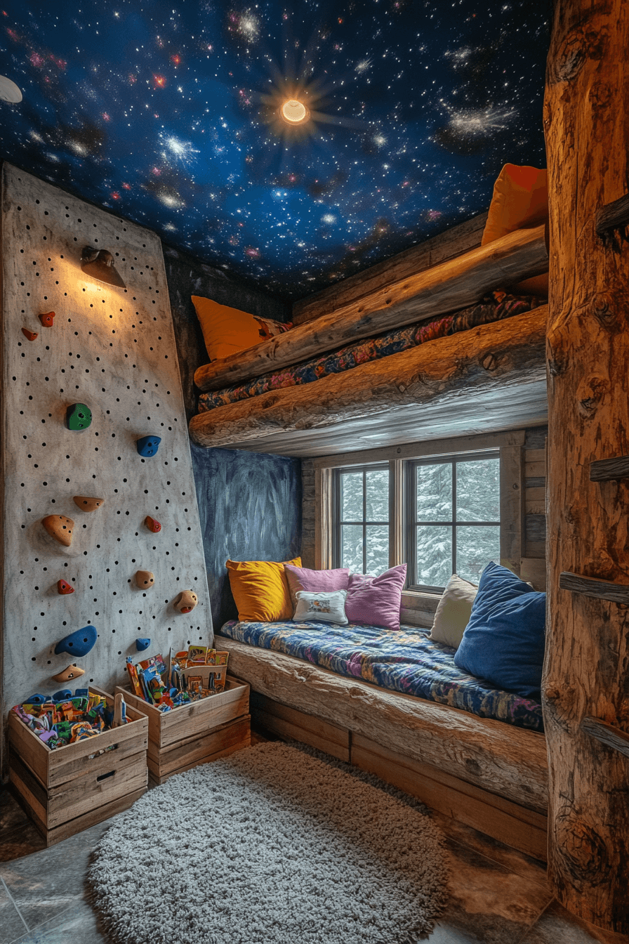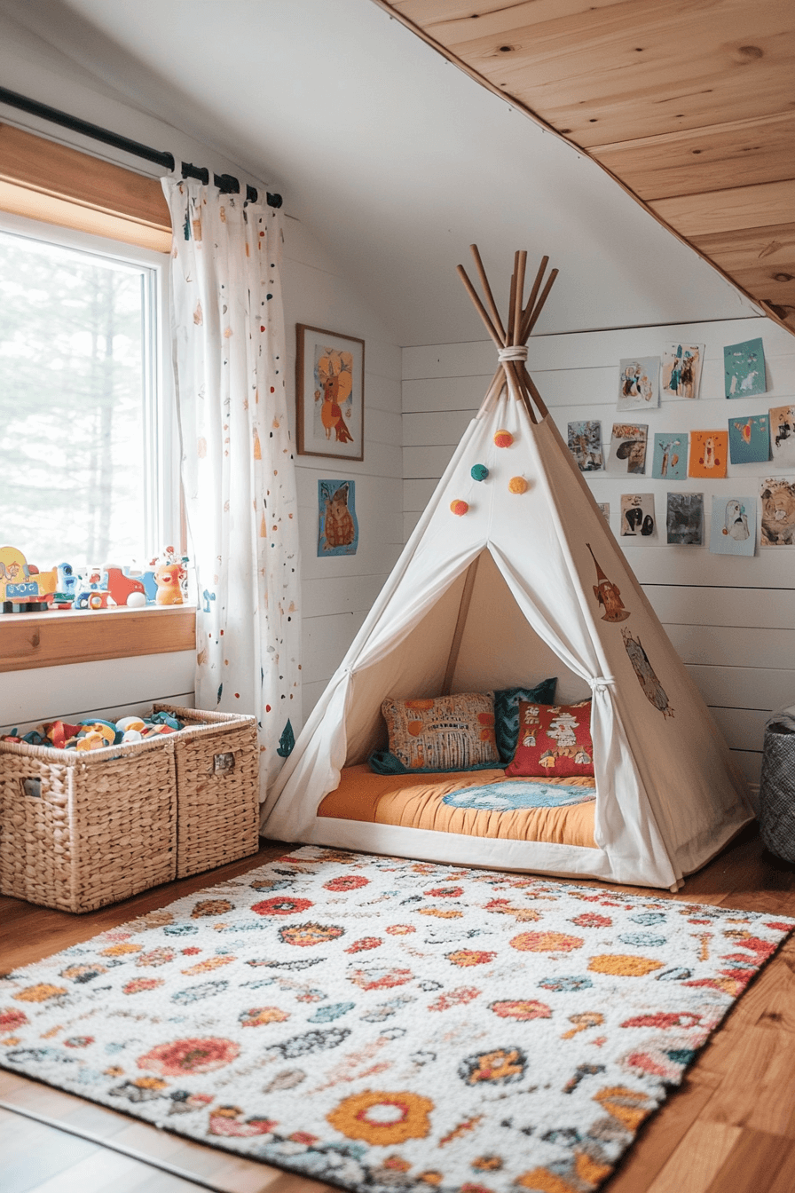 Add a touch of magic for the kids with little cabin decor that encourages play and imagination. Wooden toys, rustic storage, and cozy play tents make the space both charming and functional. Bright colors and soft textures bring cheerful energy into every corner. It’s a place where creativity and comfort meet.