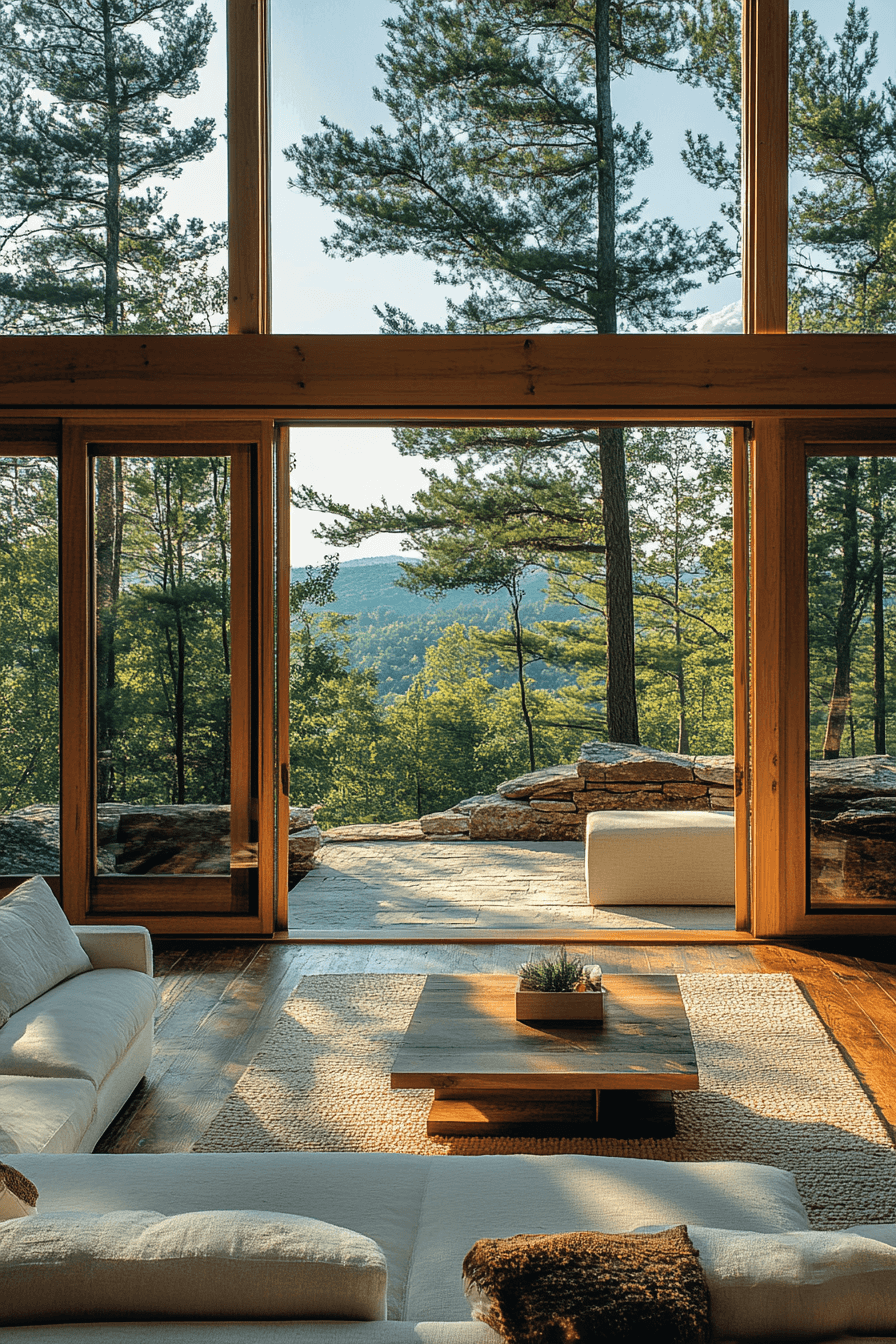 Let the views steal the show with little cabin decor designed for panoramic pizzazz. Expansive windows and mirrors reflect nature’s beauty from every angle. Minimal furnishings ensure nothing distracts from the scenery. It’s a visual retreat that celebrates openness and light.