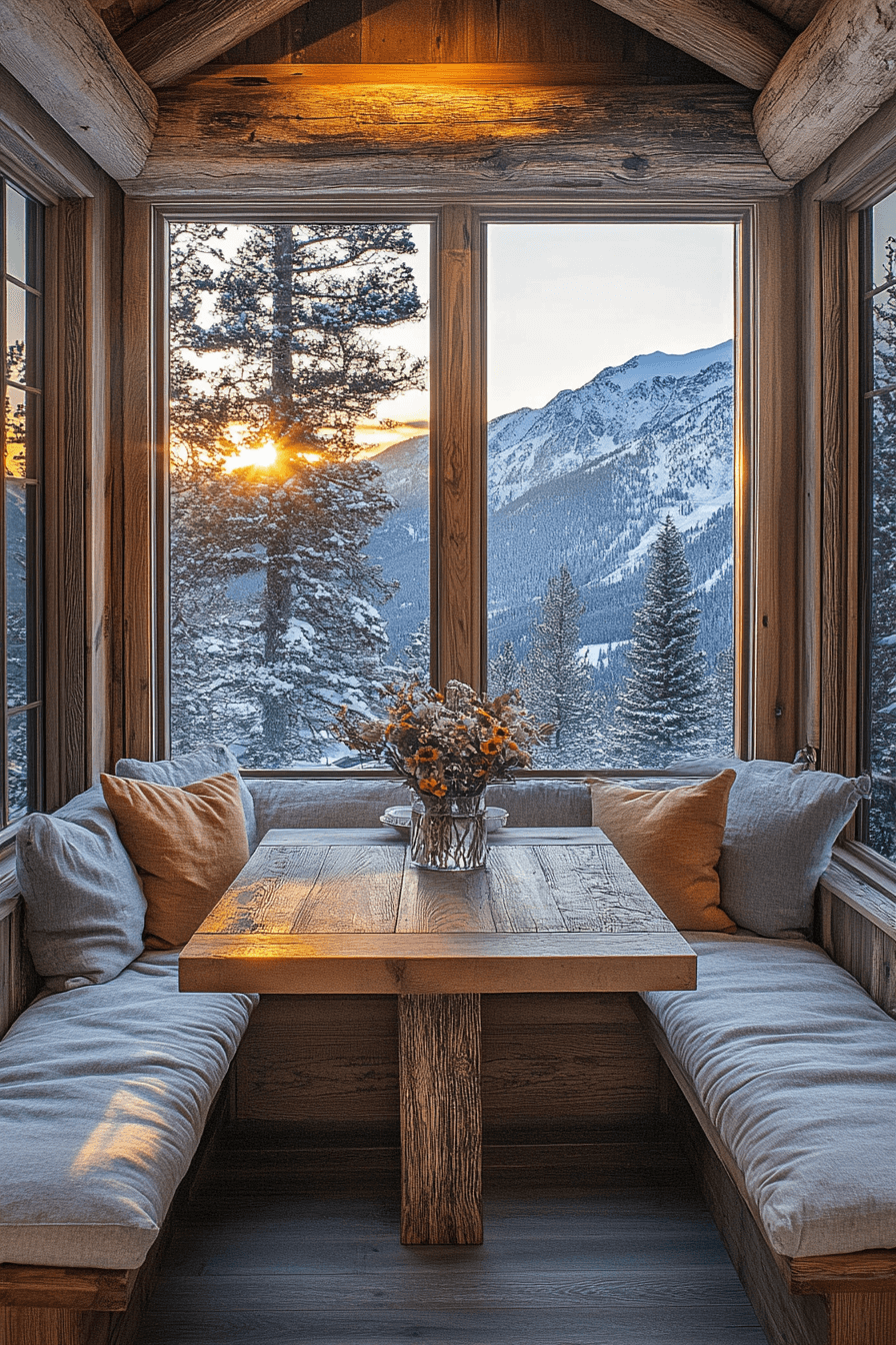 Bring the glow of the mountains into your mornings with little cabin decor that captures fresh air and first light. Sheer curtains, pale wood furniture, and soft hues echo the gentle tones of dawn. Simple, uncluttered design keeps your focus on the breathtaking views beyond the windows. Breakfast nooks drenched in sunlight make each day feel like a getaway.