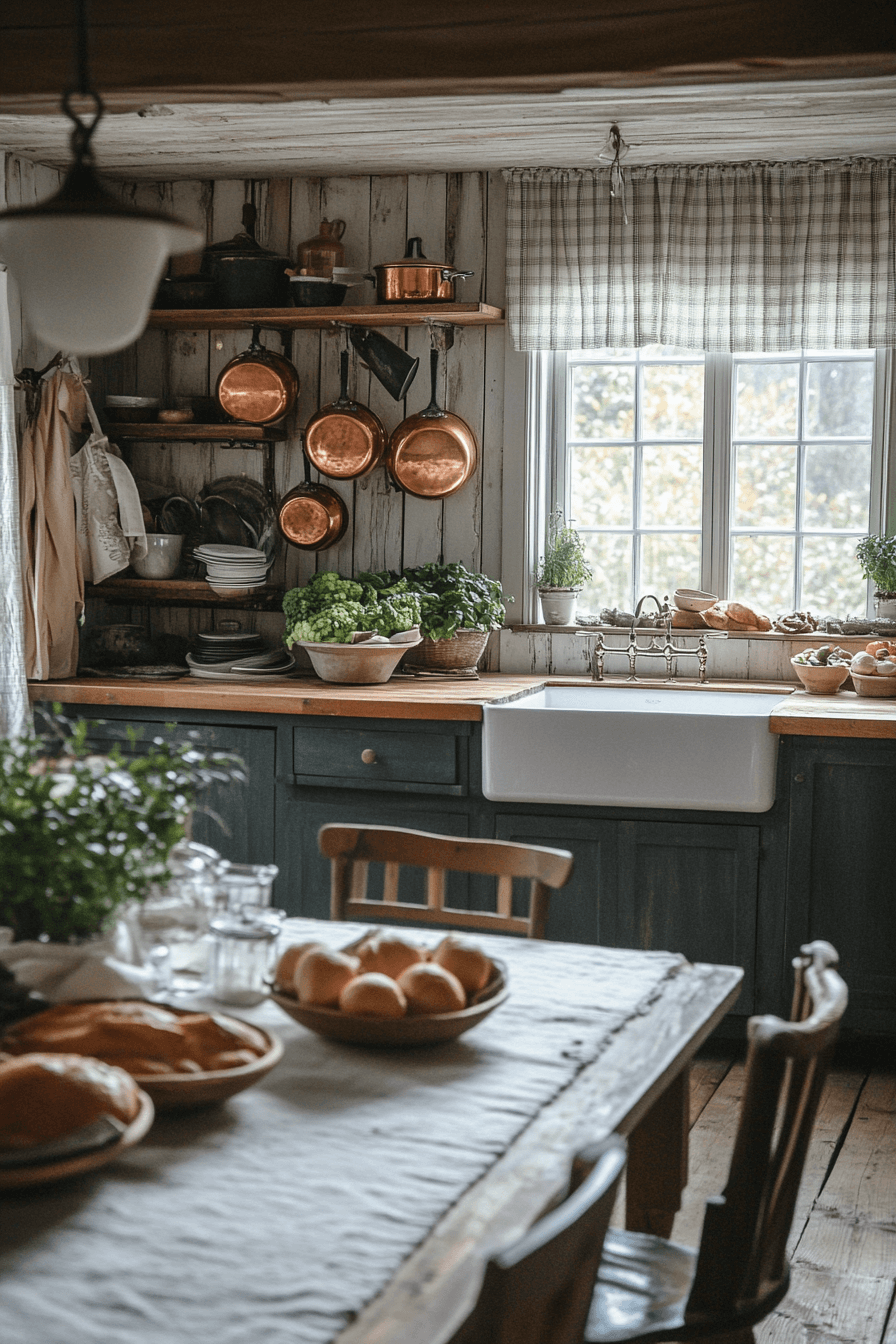 The kitchen becomes a warm gathering place with little cabin decor that celebrates heart and home. Cast iron pans, wooden utensils, and open shelving filled with heirloom jars bring rustic charm to life. A checkered curtain or farmhouse sink adds a nostalgic twist. Every detail feels cozy, practical, and full of love.