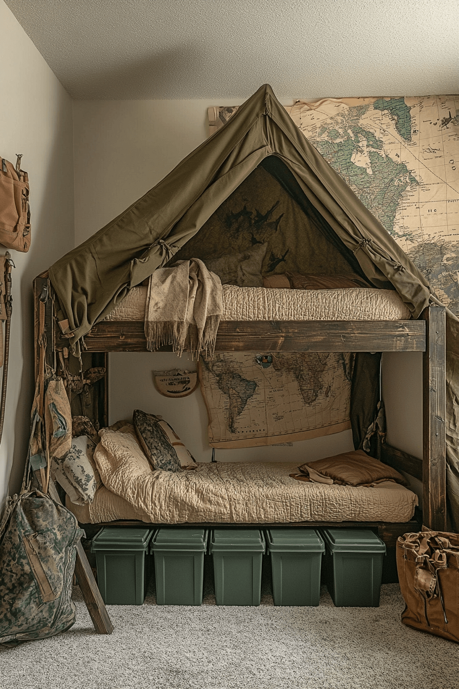 Bring the outdoors in with adventure-themed loft beds for small rooms that spark imagination. Features like a tented canopy or themed panels create the look and feel of a base camp. Beneath the sleeping area, add hidden storage or playful extras that fit right into the design. It’s the perfect mix of functionality and fun for kids with big imaginations. These beds turn every night into an adventure.