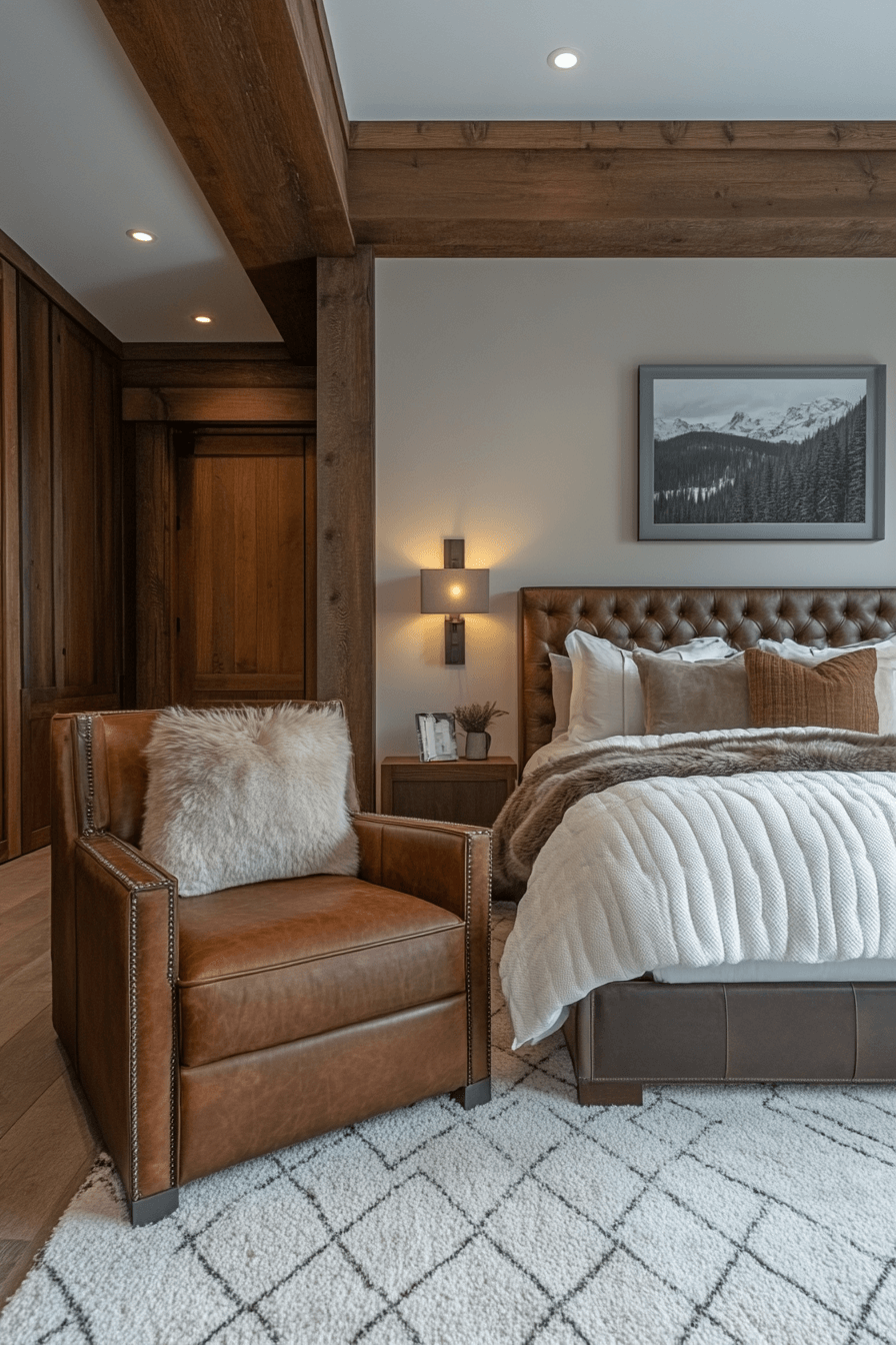 Rustic charm meets refined elegance in this luxury bedroom master. Natural materials like stone and wood are paired with plush textiles for a balanced, upscale look. It’s warmth and sophistication in perfect harmony.