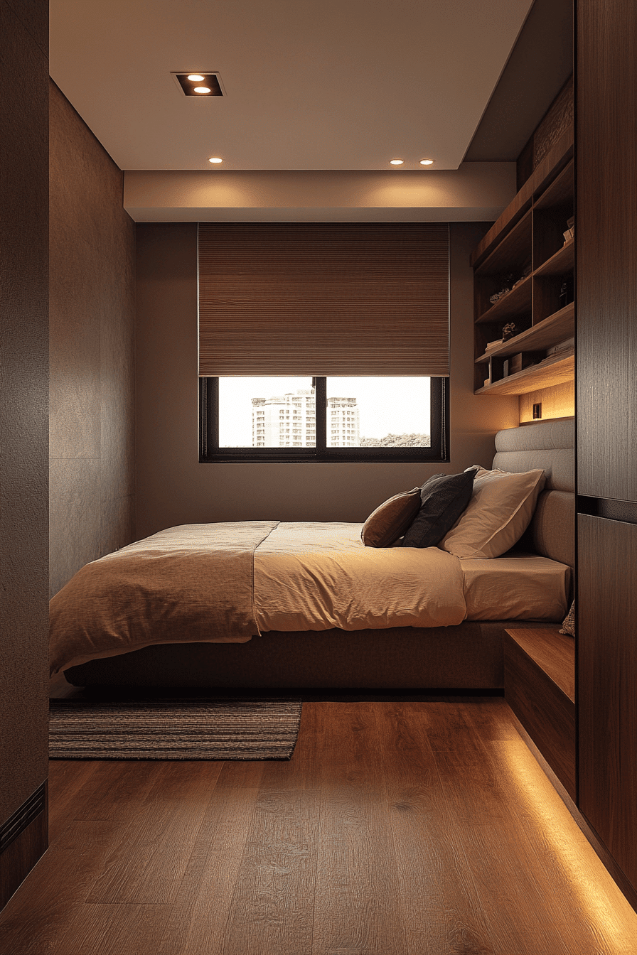 A clean, streamlined approach can turn a modern bedroom interior into a peaceful sanctuary that feels both refined and relaxing. Crisp lines, clutter-free surfaces, and a soft neutral palette allow every element to stand out with intention. Built-in storage like floating shelves and concealed drawers keeps everything organized without visual noise. A low-profile bed with fresh white bedding anchors the space beautifully. Gentle lighting and a soft rug add warmth while maintaining that minimalist vibe. Tap to explore more modern bedroom interior ideas that celebrate effortless simplicity.