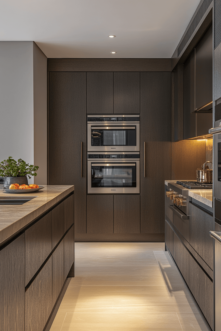 Floor-to-ceiling cabinetry gives this modern luxury kitchen a tailored, built-in look while maximizing every inch of storage. The tall units create a sense of height and grandeur, keeping clutter completely hidden. Integrated appliances and smooth door fronts maintain a monolithic, streamlined appearance. A contrasting island or backsplash provides just enough visual relief to keep things dynamic. This modern luxury kitchen delivers both practicality and architectural presence. Tap to see how a full-height cabinet design can give your home a custom, high-end feel.