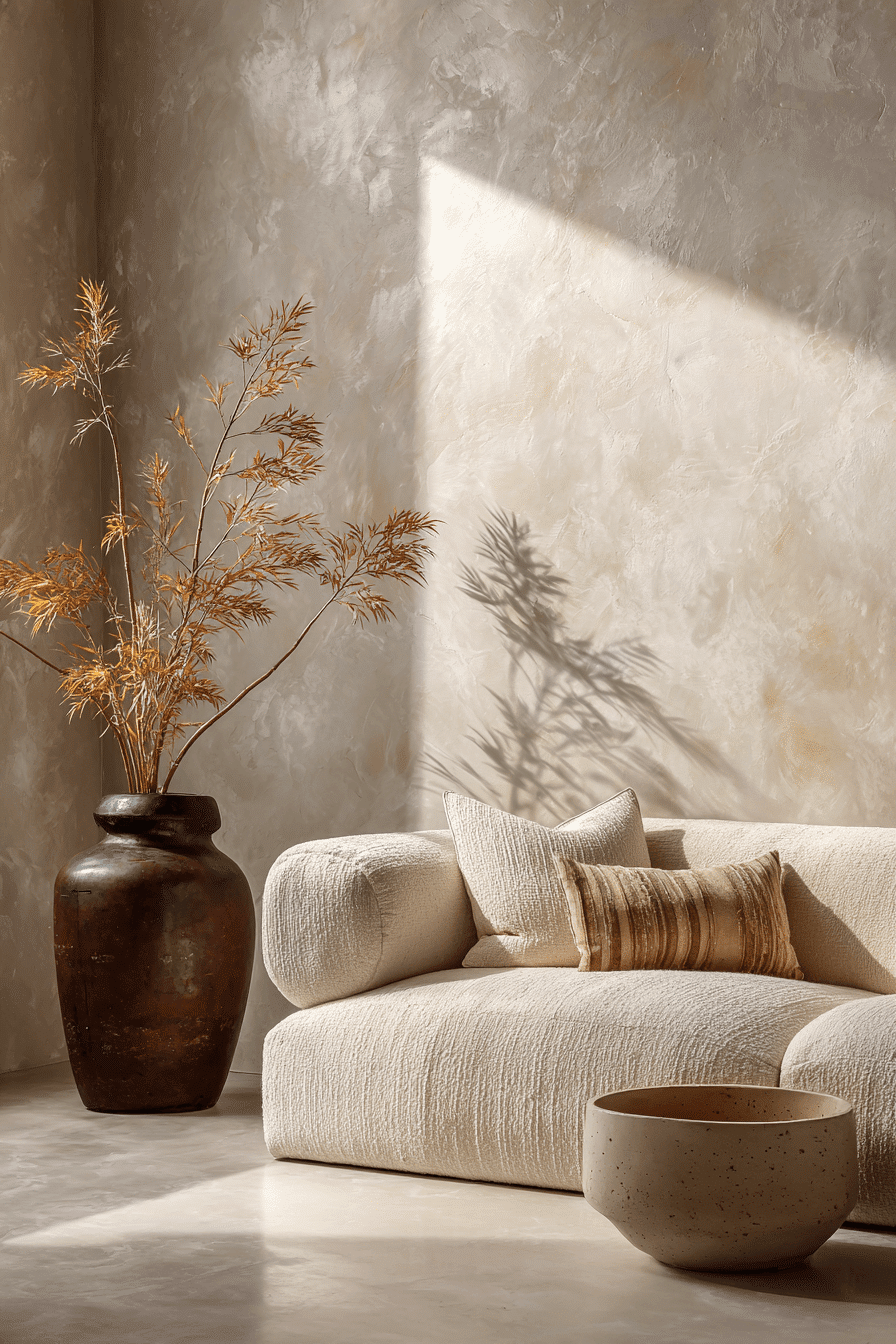 Seamless microcement walls and floors give this modern luxury living room a sculptural, gallery-like quality. The continuous surface feels sleek and contemporary. Soft textiles and warm accents add contrast and comfort. Minimal decor keeps the focus on form and material. This design works beautifully in a modern luxury living room because it feels curated and cutting-edge. Click to learn how microcement can modernize your lounge.