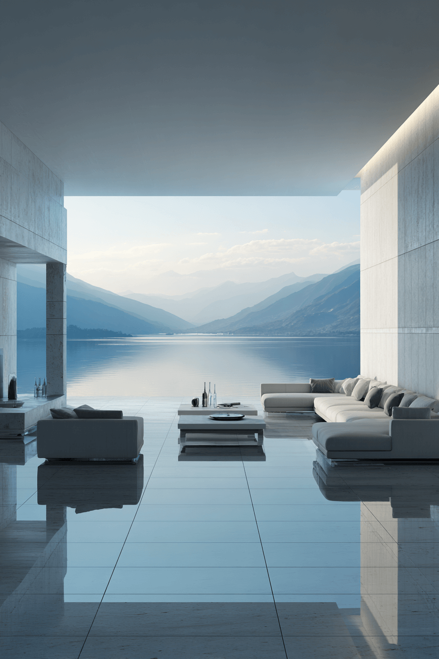 This modern luxury living room is built around expansive windows that frame breathtaking views. The furniture layout is intentionally minimal to keep the focus on natural light and scenery. Low-profile sofas and sleek tables maintain an open, airy feel. Neutral tones and reflective finishes amplify the brightness throughout the room. It works perfectly as a modern luxury living room because it integrates architecture and interior design seamlessly. Click to explore how maximizing your view can elevate your living room.