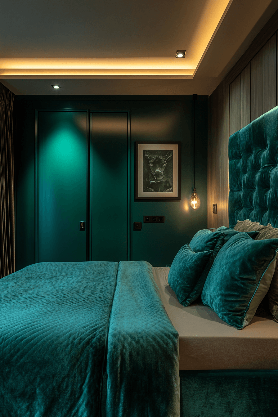 Rich sapphire, emerald, and amethyst tones bring decadent depth to this Neo Deco bedroom design. These hues evoke the opulence of the Art Deco era while feeling bold and trendy today. Paired with gold trim and velvet textures, the space feels like a boutique hotel suite. Jewel tones offer instant drama and sophistication. The look is confident, lavish, and mood-boosting. Dive into this luxe palette now!